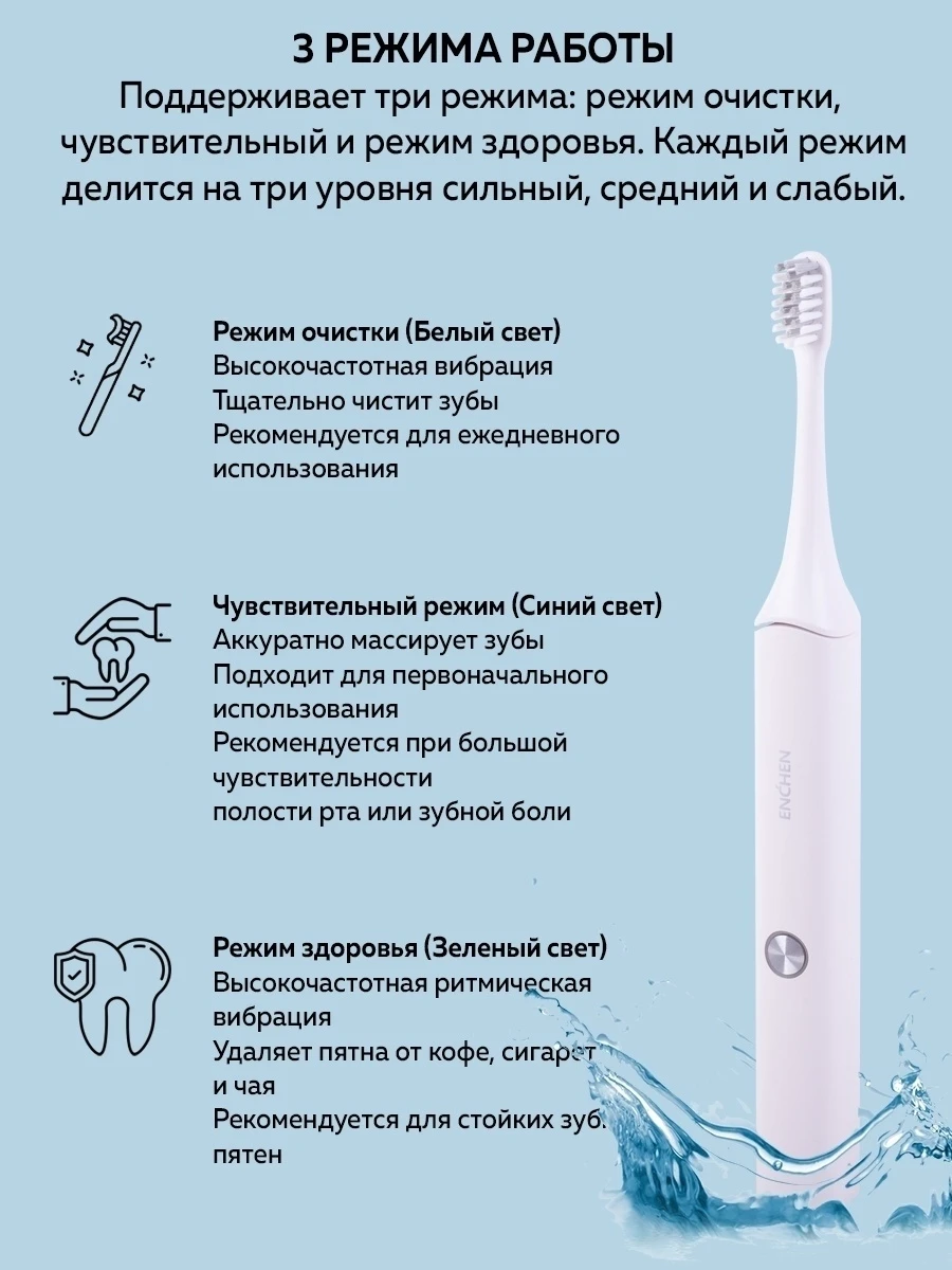 Enchen Aurora T представляет собой электрическую зубную щетку, которая с легкостью очистит всю полость рта. Модель обладает степенью защиты IPX7, благодаря чему ей не страшны воздействия воды и влаги.