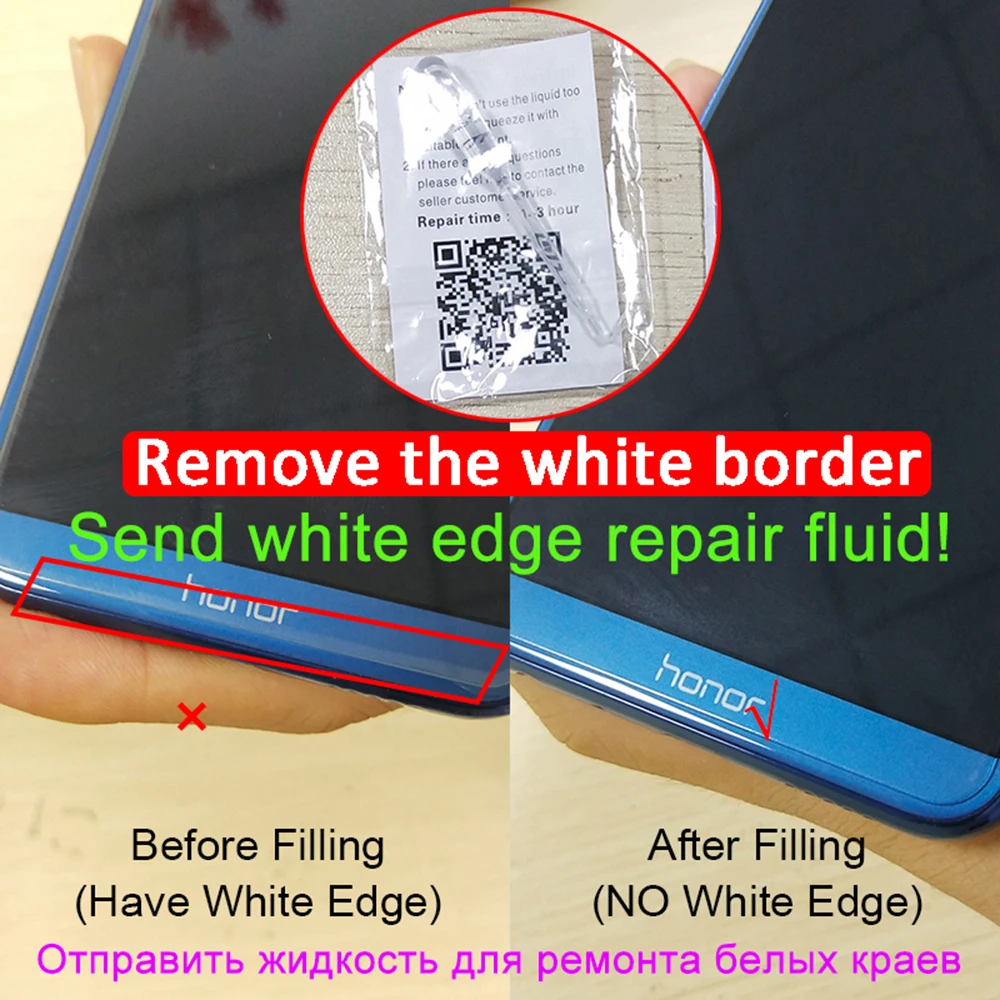Примечание: Если после вставки есть белые края, используйте жидкость для ремонта с белыми краями. Заполните жидкость в том месте, где она не полностью установлена.