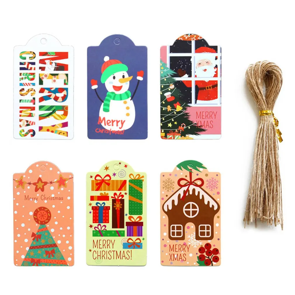 48 шт Счастливого Рождества крафт-бумажные бирки Сделай Сам подарочная оберточная бумага этикетки поздравительная открытка Санта Клауса новогодние украшения