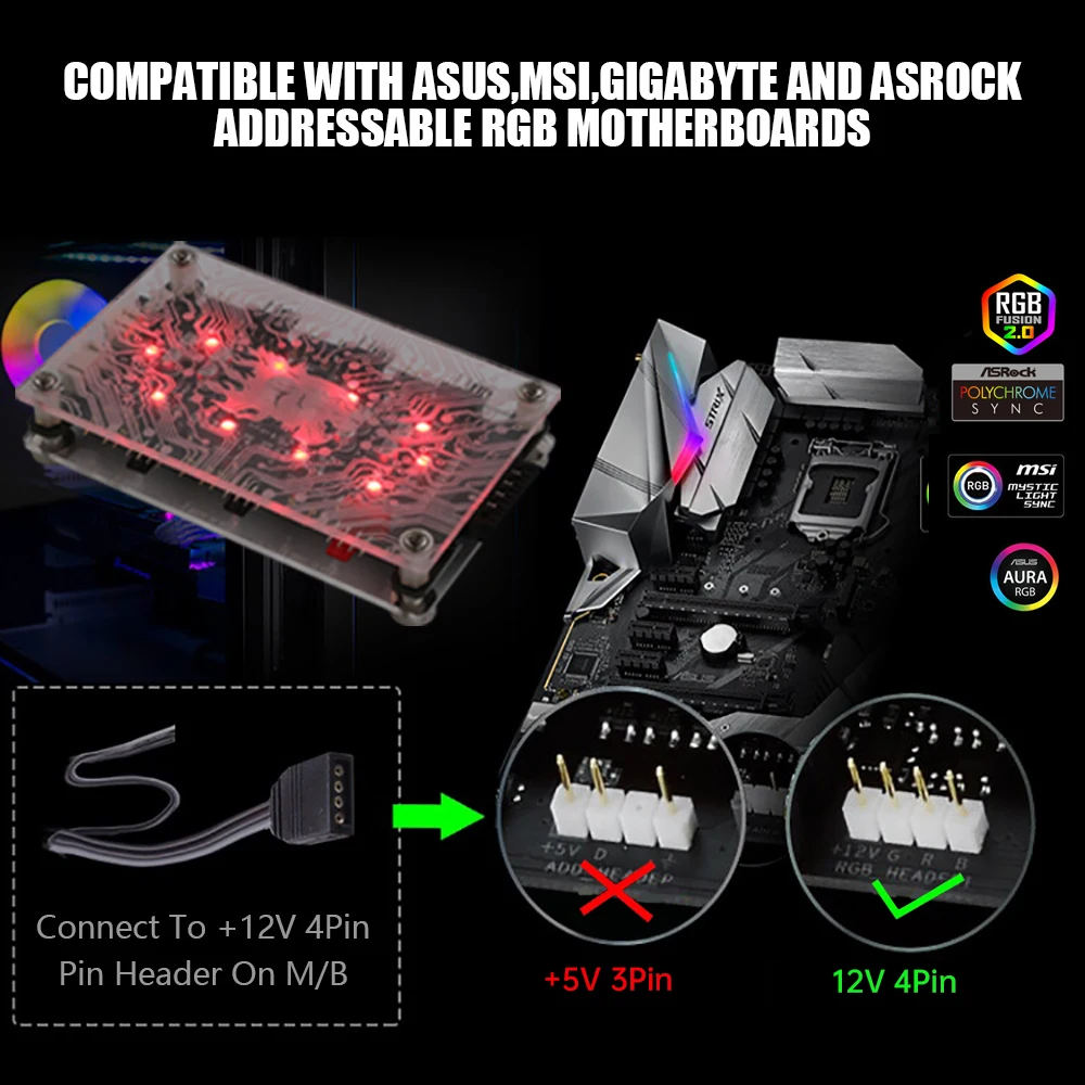 Новейшая версия 2 в 1 6-способы 12V ARGB и 12V шим тока втулка вентилятора с акриловый чехол и Магнитная стойка для ASUS/MSI 12V 4Pin светодиодный контроллер