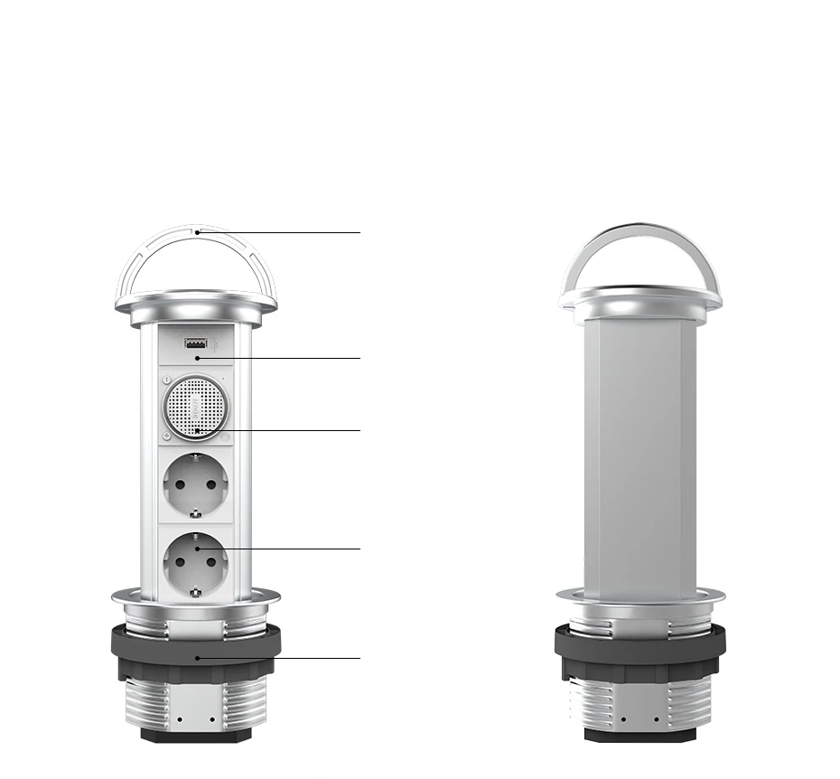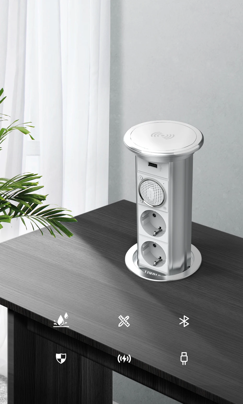 Ручной всплывающий разъемПростой скрытый, интегрированный на рабочем столеУровень защиты IP44Пользовательский модульBluetooth-динамикАлюминиевый сплавБеспроводная зарядная пластинаUsb-порт для зарядки