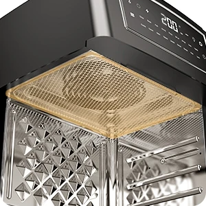 Мощный внутренний вентилятор использует ультра-быструю технологию циркуляции воздуха 360 ° и его отражающую структуру для быстрого и равномерного приготовления пищи, в результате чего не содержит масла, здоровая и хрустящая пища.