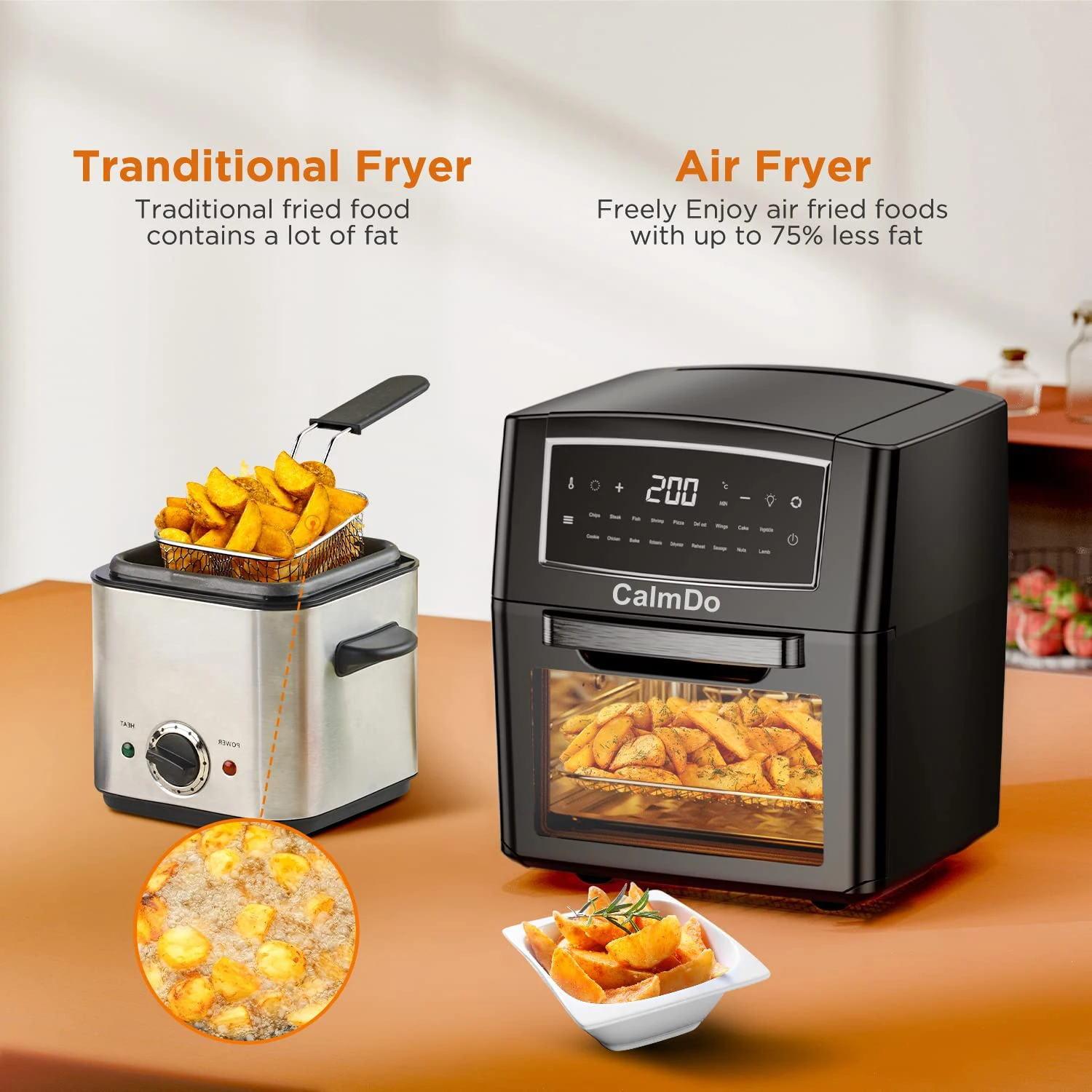 Емкость 12 литров идеально подходит для пар, roommates и друзей, чтобы поделиться. Все ваши любимые продукты, такие как хрустящая рыба и чипсы, отличные жареные овощи, хорошо приправленный пирог и липкий пудинг, могут быть жареные и жареные в нем.
