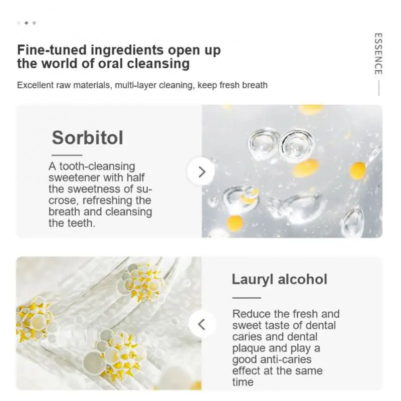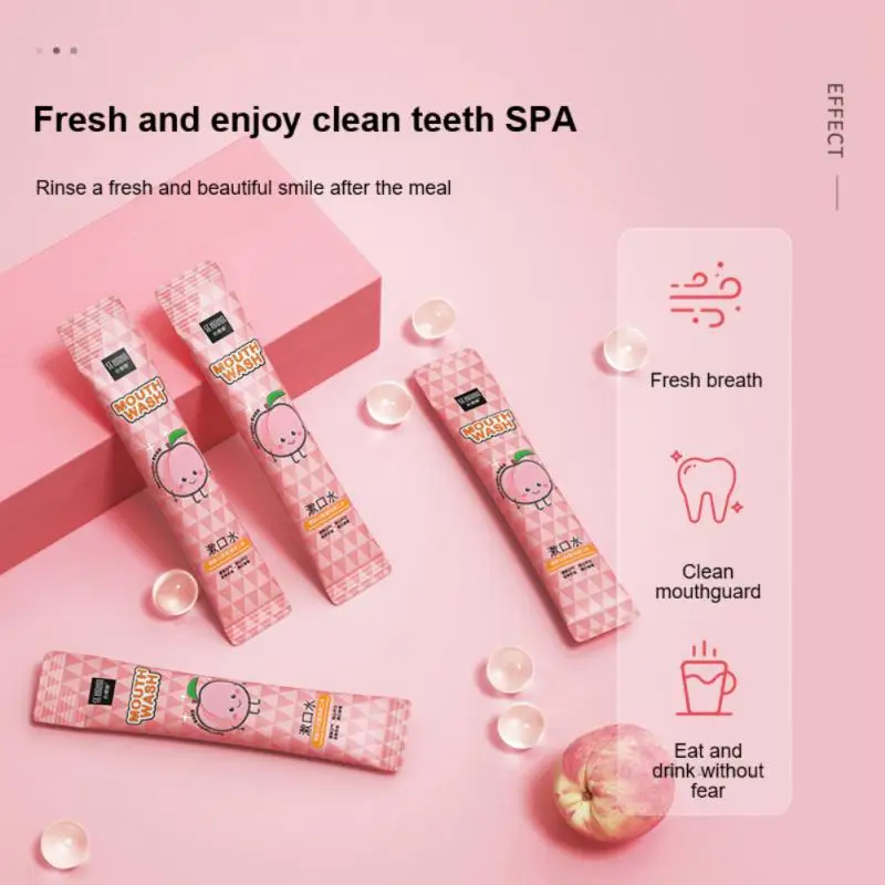 Портативная одноразовая быстроочищающая жидкость для полоскания рта имеет шесть функций, которые могут привести к повреждению дыхания, укрепление зубов, предотвращение распада зубов, восстановление зубной эмали, очистка рта и освежающее дыхание.