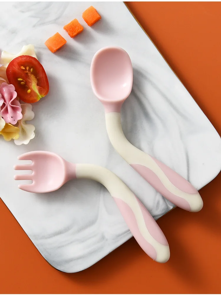 2 шт., силиконовая ложка для детского набора, вспомогательная пищевая посуда для малышей, обучающая, гибкая, мягкая вилка, детская посуда