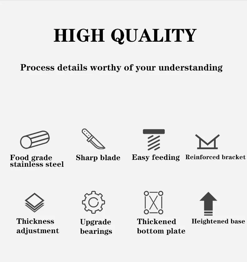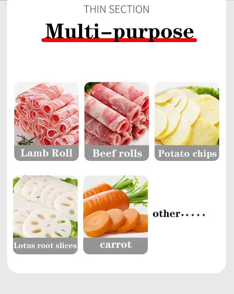 -Лезвие принимает нержавеющую сталь пищевого качества, enviornmental protection и health, легко режет, питается, легко; Водонепроницаемый и антикоррозийный, не ржавеет.-Это не только для резки мяса, но и для фруктов и овощей. С этой универсальной машиной, вы можете легко съесть горячий горшок дома.