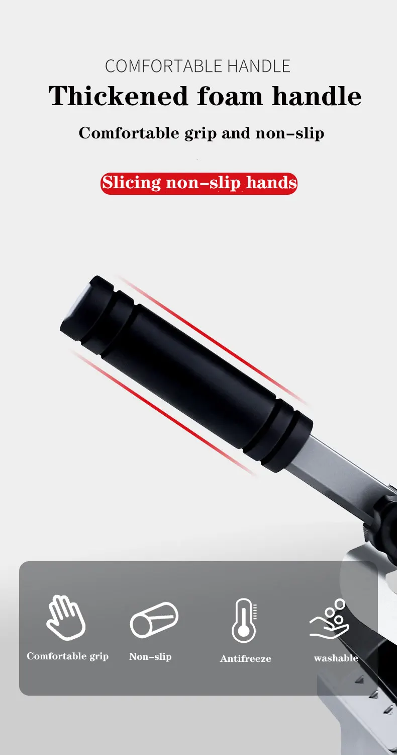 -Уплотненная противоскользящая ручка из пенопласта, удобная ручка, легко нарезать. Пружинная Автоматическая Доставка мяса, эффективно предотвращает резку в руку.