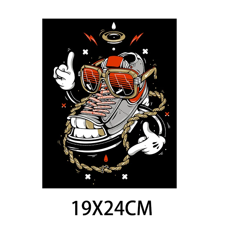 Забавная обувь в стиле хип-хоп с теплопередачей, модная обувь для скейтборда для одежды, моющаяся футболка, аппликация для свитера
