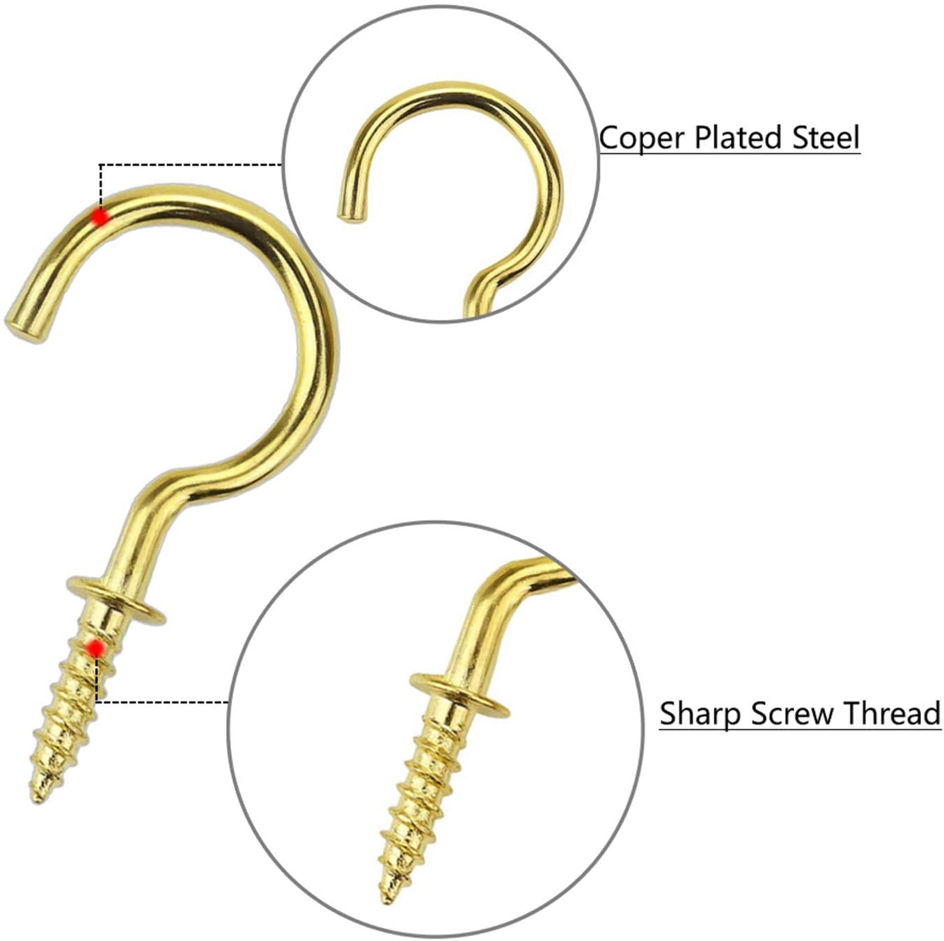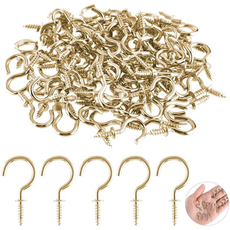 50 шт. 1/2 5/8 3/4 дюйма латунная покрытая плечом кружка крючки винтовые крючки садовые растения держатель металлический потолочный шуруп-в настенная вешалка