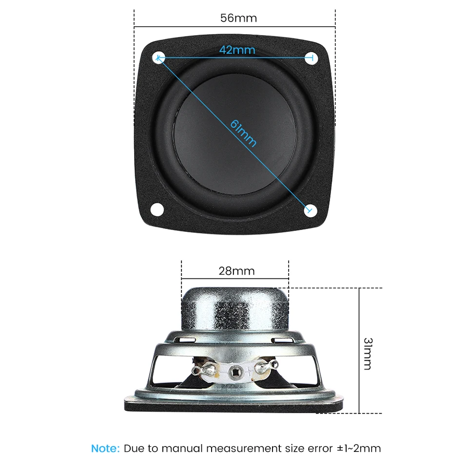 Описание товара: Название продукта: 2,2 дюймов Неодимовый середины НЧ-динамик 4 Ом 5 Вт Толщина: 31 мм (включая толщину прокладки) Сопротивление: 4 Ом Мощность: 5 Вт Размер: 2,25 дюйма (56 мм) Неодимовый магнитный внутренний магнит, 28 мм звуковая катушка бас достаточно сильный, малый диаметр полный диапазон, хорошая производительность средних басовМатериал магнитной цепи: Неодимовый внутренний магнит, резиновый край PP горшок нижний таз Посылка включает в себя:2 шт.