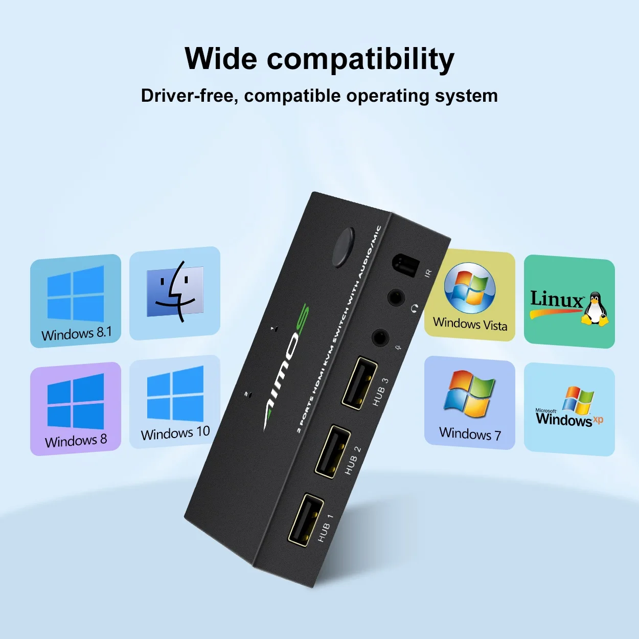 Поддерживает 2 канала HDMI и USB вход и 1 Маршрут HDMI выход, 2 компьютера имеют общий доступ 1 монитор или устройство отображения.