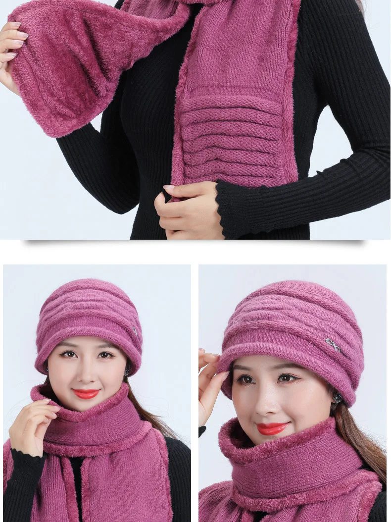 Зимняя флисовая вязаная Лыжная шапка и шарф для женщин