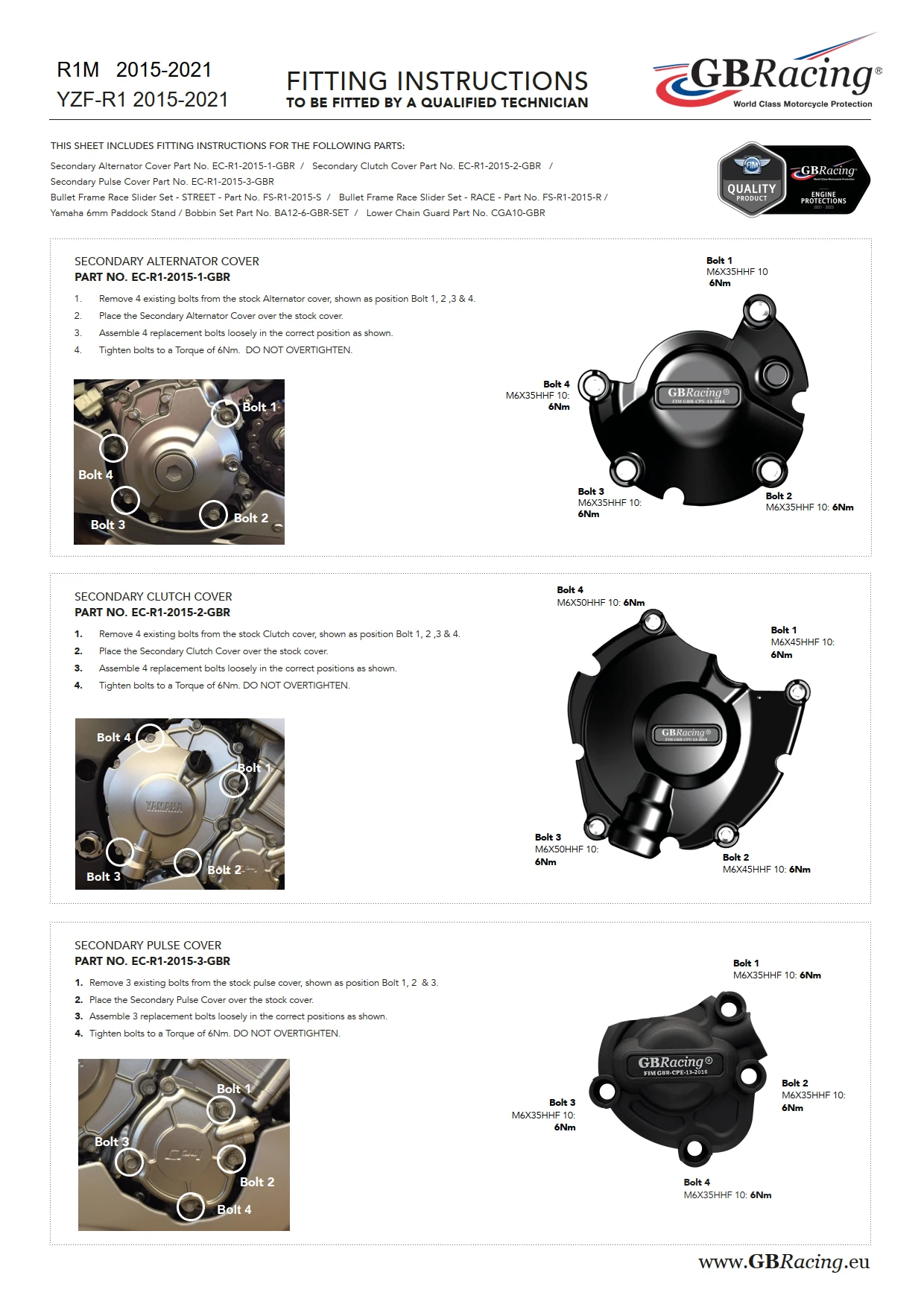 Подходит для YAMAHA YZF1000 R1 & R1M 2015-2021