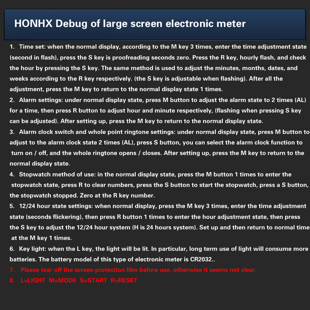 Многофункциональность: отображение времени, секундомер, задний светильник, отображение даты, отображение недели, будильник времени, 12/24 ежечасный, водонепроницаемый, ударопрочный,