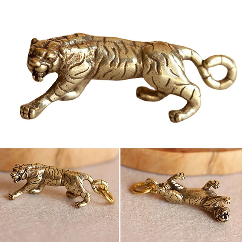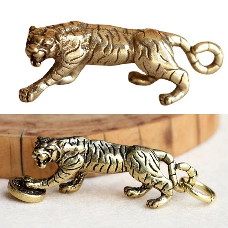 Зодиак из латуни тигр животное брелок Медный Крик брелок со Зверем ручной работы ремесло с маленьким кольцом