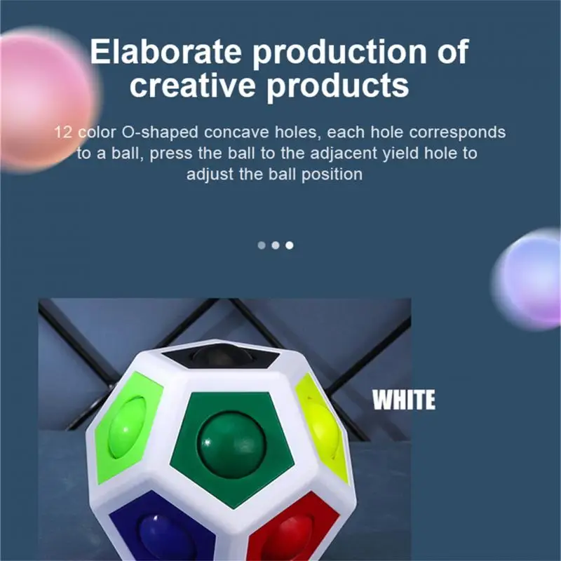 Мудрость веселье, многогранник нажмите Радужный шар, удовольствие от кончика пальца более весело и разложено. Маленькие бусины можно сдавливать и выискивать из боковой полости, чтобы помочь детям тренировать пространство мозга, обогатить воображение и развивать координацию рук и хватать способности. Шлифовка с технологией изобретательности, круглая и гладкая без заусенцев; Высокопрочный материал предпочтительнее, чтобы противостоять столкновению с падающей ямой; 12 цветов o-образных вогнутых отверстий тщательно разработаны, И каждое отверстие соответствует круглому шару. Нажмите круглый шар, чтобы установить его на соседнее отверстие для выхода, чтобы отрегулировать положение круглого шара