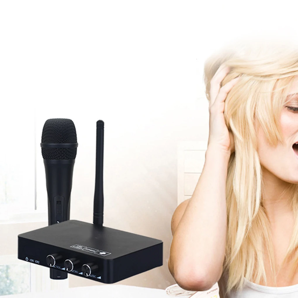 Профессиональная Беспроводная микрофонная система с 2 микрофонами, чтобы вы могли наслаждаться музыкой с друзьями.