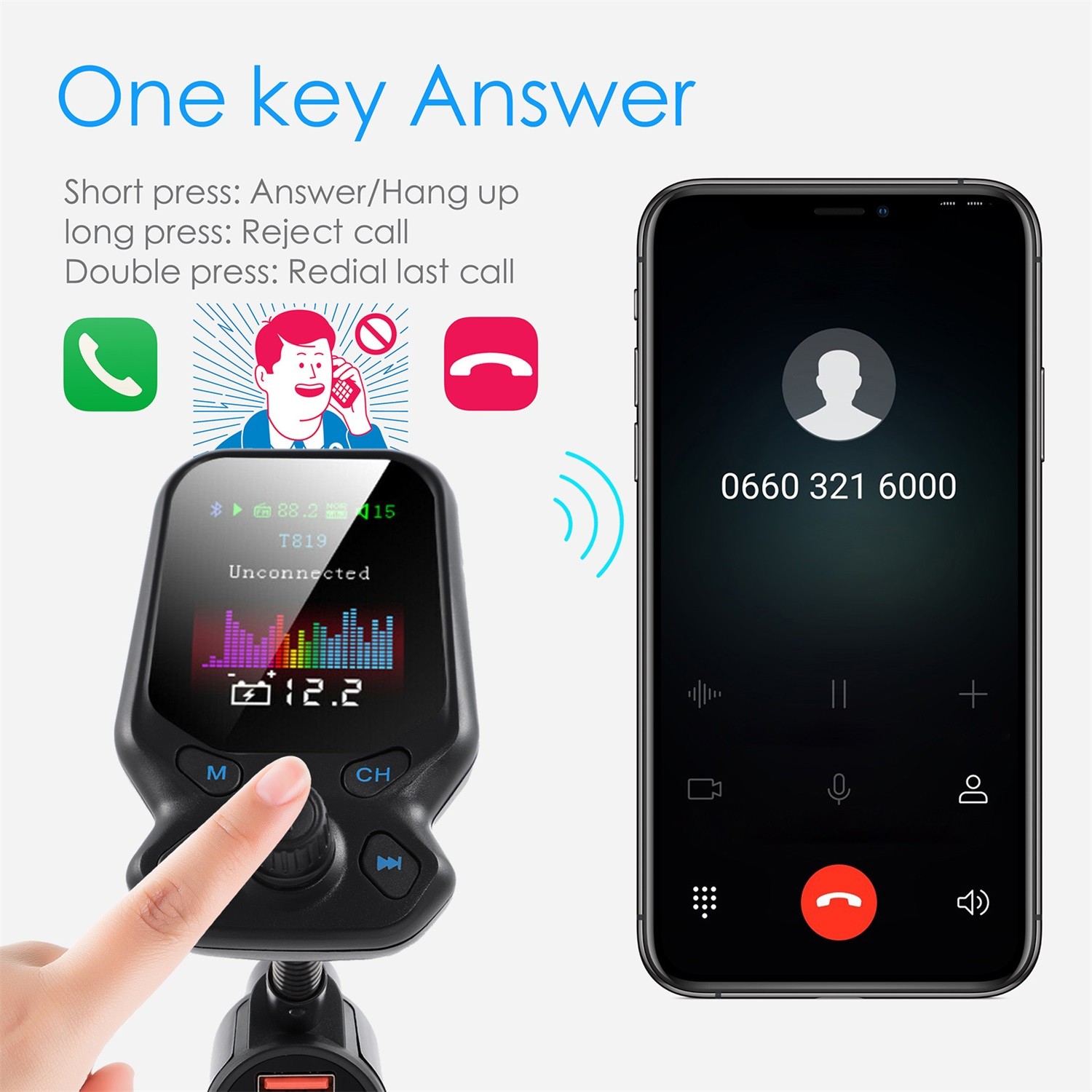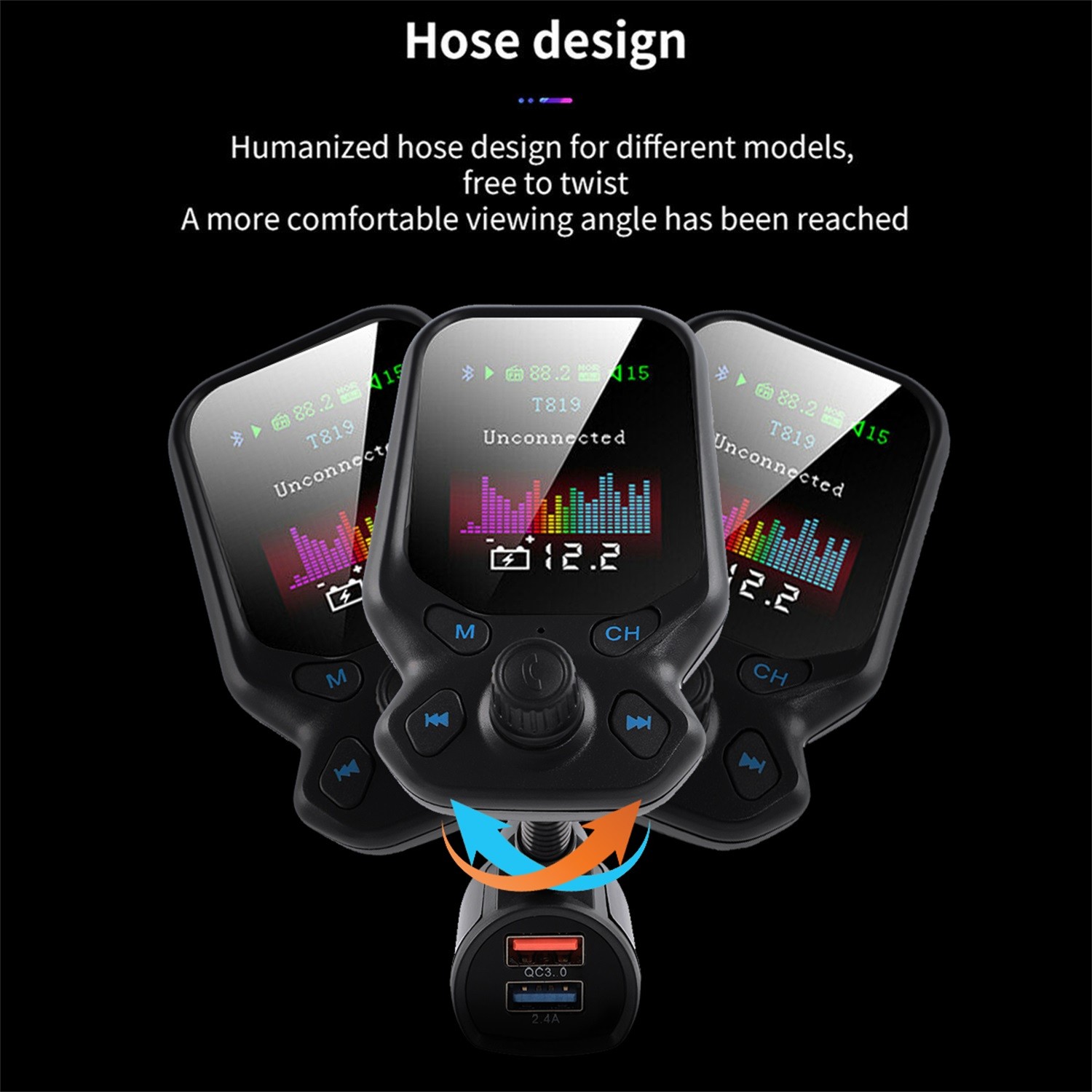 Модель: T819 Bluetooth V 5,0 Рабочее напряжение: 12 В ~ 24 В Интерфейс USB: 3 шт. (QC3.0, Разъем USB2.4A, u-диск) Выходной ток: QC3.0 быстрый Зарядка 6,5-9 в 2A, 9-12 В 1.5A; Стандартная Быстрая зарядка 2.4A, 1A Выход напряжение: 5V-12V Рабочая температура: <60 Градусы Формат музыки: MP3/MAV/WMA/FLAC Поддержка u-диска, tf-карты Емкость: 1 г-32 г FM Частота передачи: 87,5 МГц-108 МГц Эффективное расстояние вызова: 0,5-2 м Эффективное расстояние Bluetooth: ≤ 10 м Экран: 1,8 Дюйм (ов)Описание: