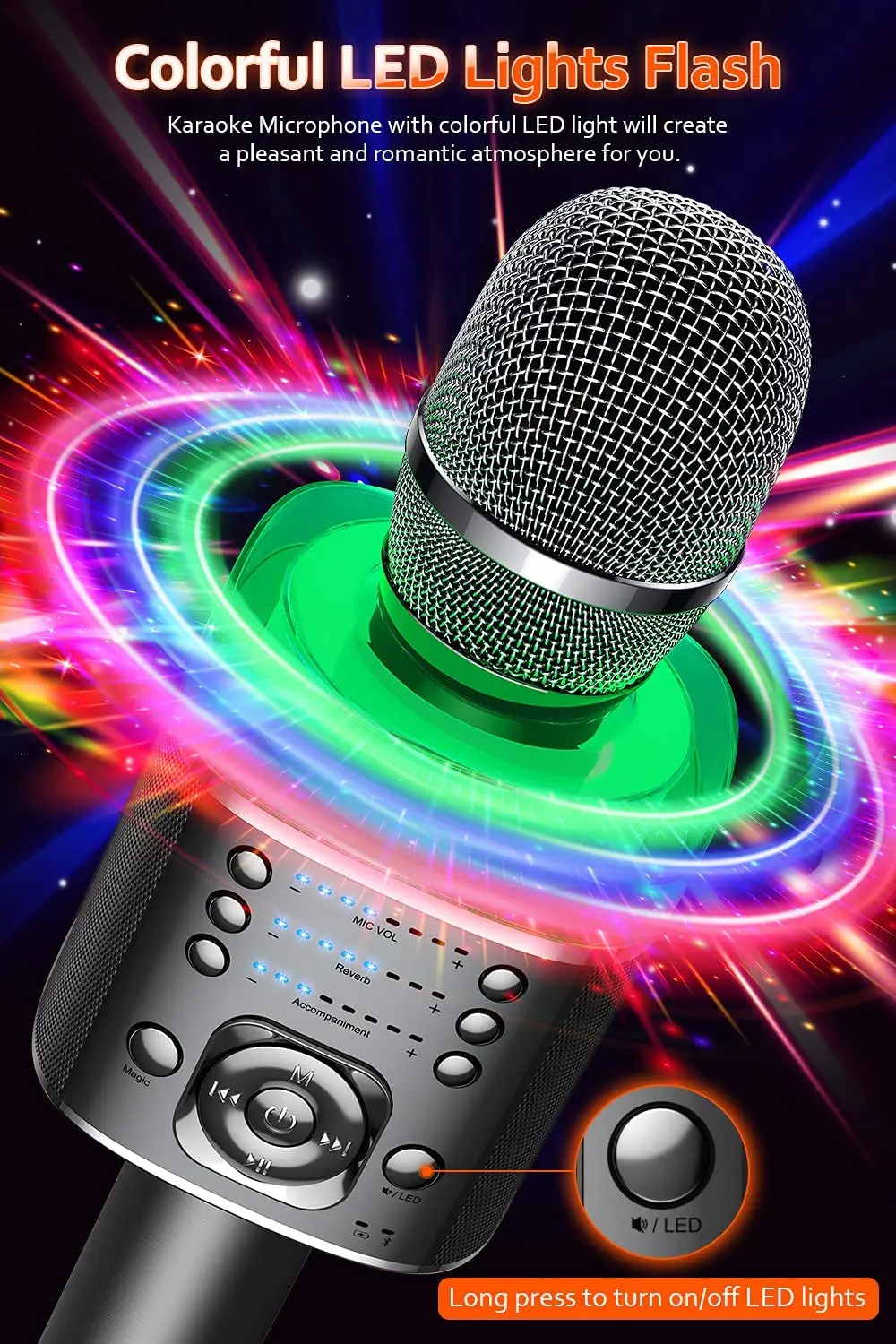 Красочные светодиодные фонари дизайн-караоке микрофон красочные светодиодные фонари 4-в-1 дизайн, его в качестве, микрофон, динамик, плеер и видео рекордер с ритмом, который идеально подходит для вечерние, семья, пения, почувствуйте себя в центре мини-клуба KTV.