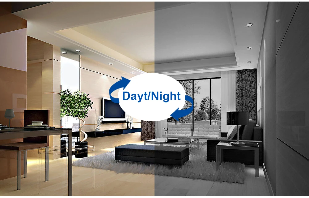 Умный фильтр, отсекающий ИК-спектр автоматически переключается между днем и ночью, цвет toreduce в дневное время и повышает яркость изображения в ночное время. Вы можете получить яркие кадры наблюдения от рассвета до темноты.