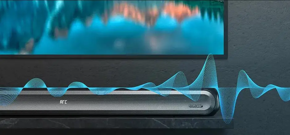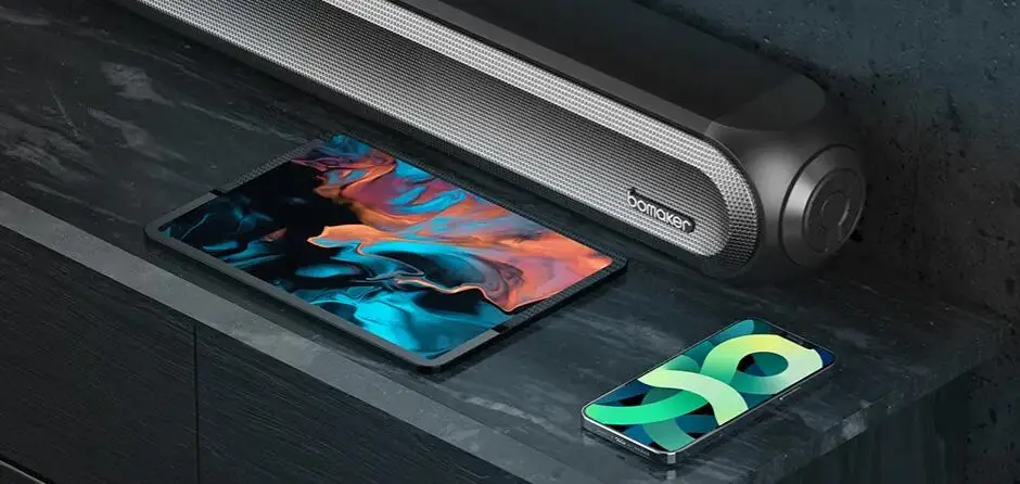 Soundbar Bomaker dolby Использует чипсет премиум класса 5,0 для обеспечения быстрой скорости передачи данных и стабильного подключения, что снижает задержку на входе до 30 мс, без шипящего шума или задержки.
