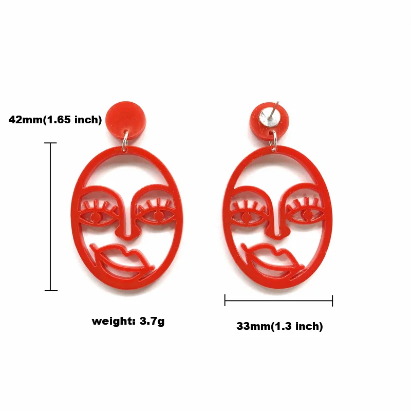Модные красные, черные, белые, открытые, жуткое человеческое лицо, акриловые серьги-гвоздики для женщин, классические модные ювелирные изделия
