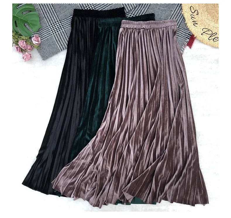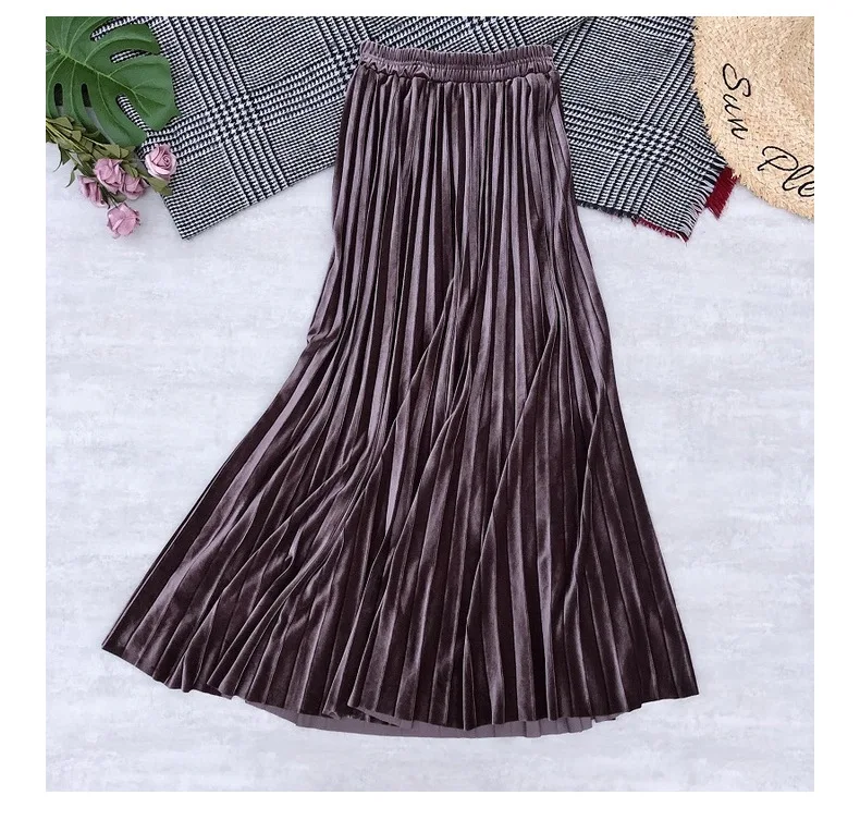 2021 осень зима Женская Золотая Бархатная длинная юбка Корейская Женская эластичная повседневная юбка с высокой талией Женская плиссированная юбка B07004R