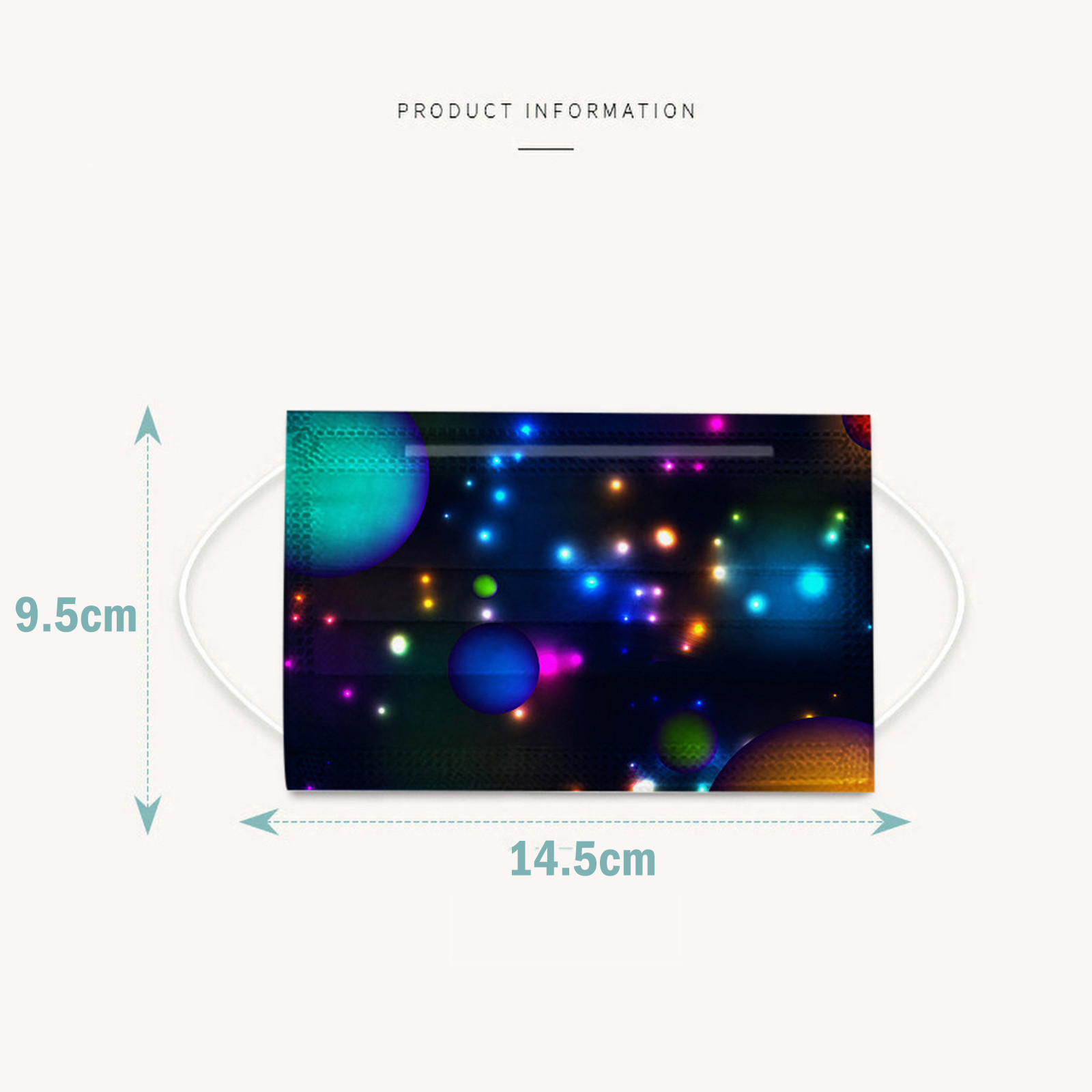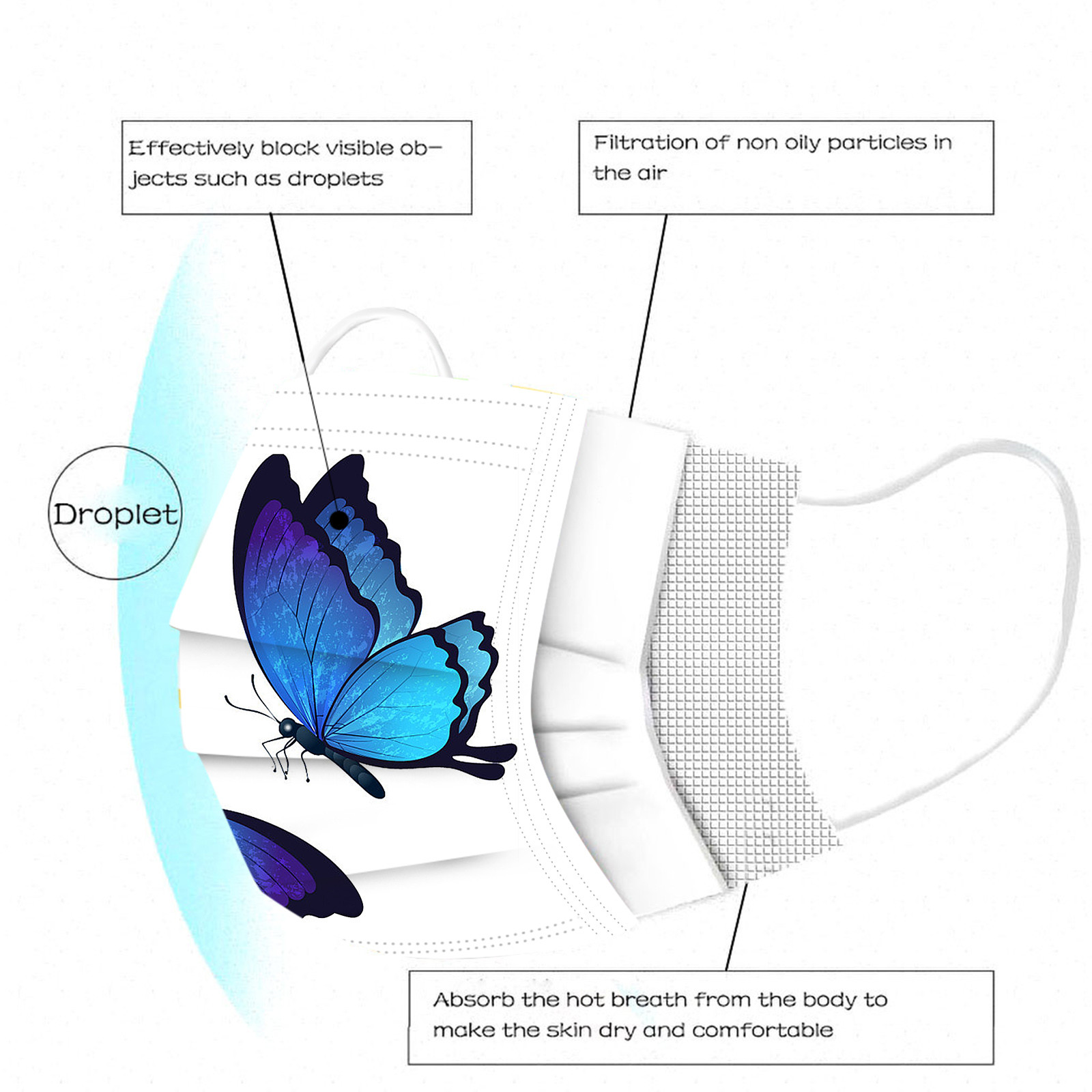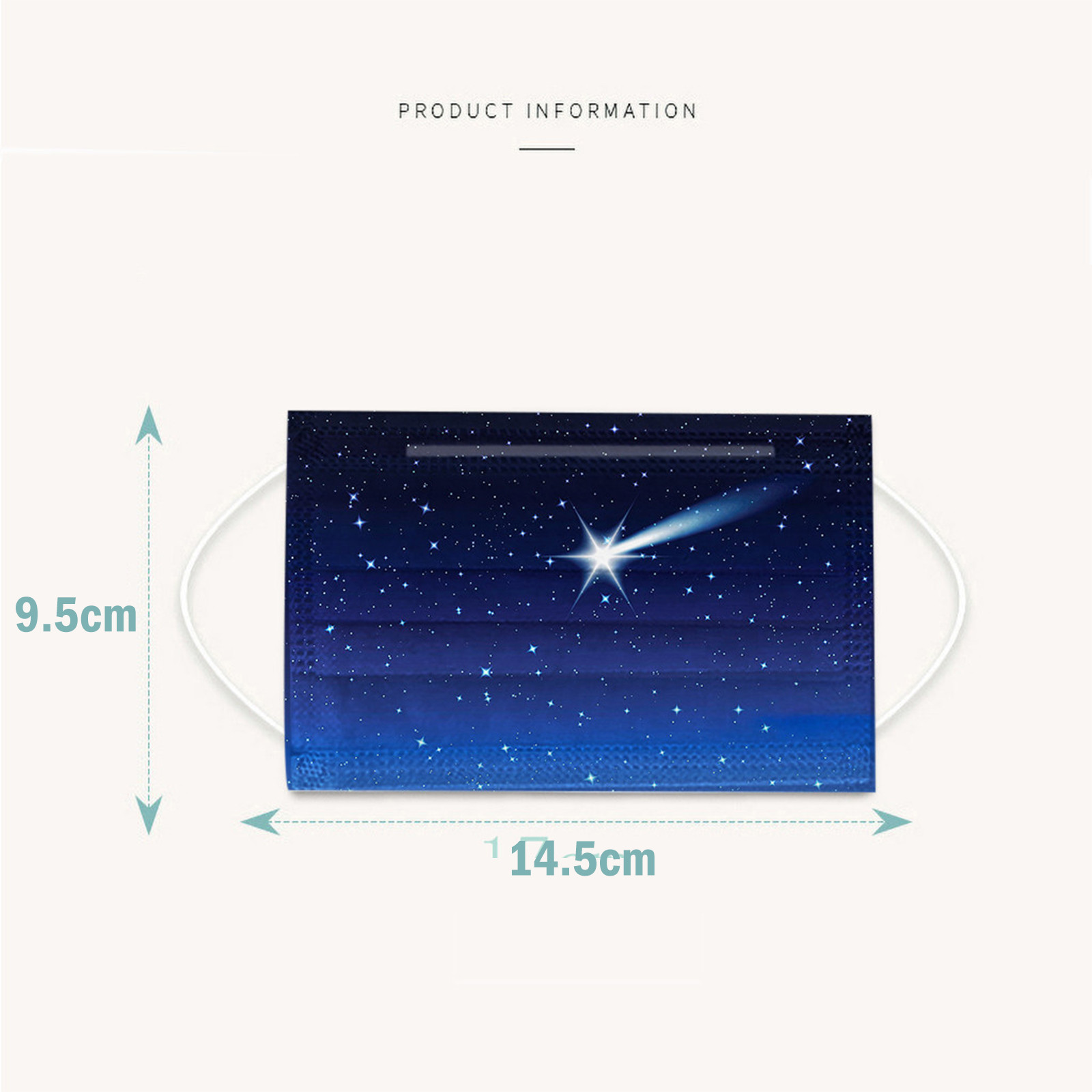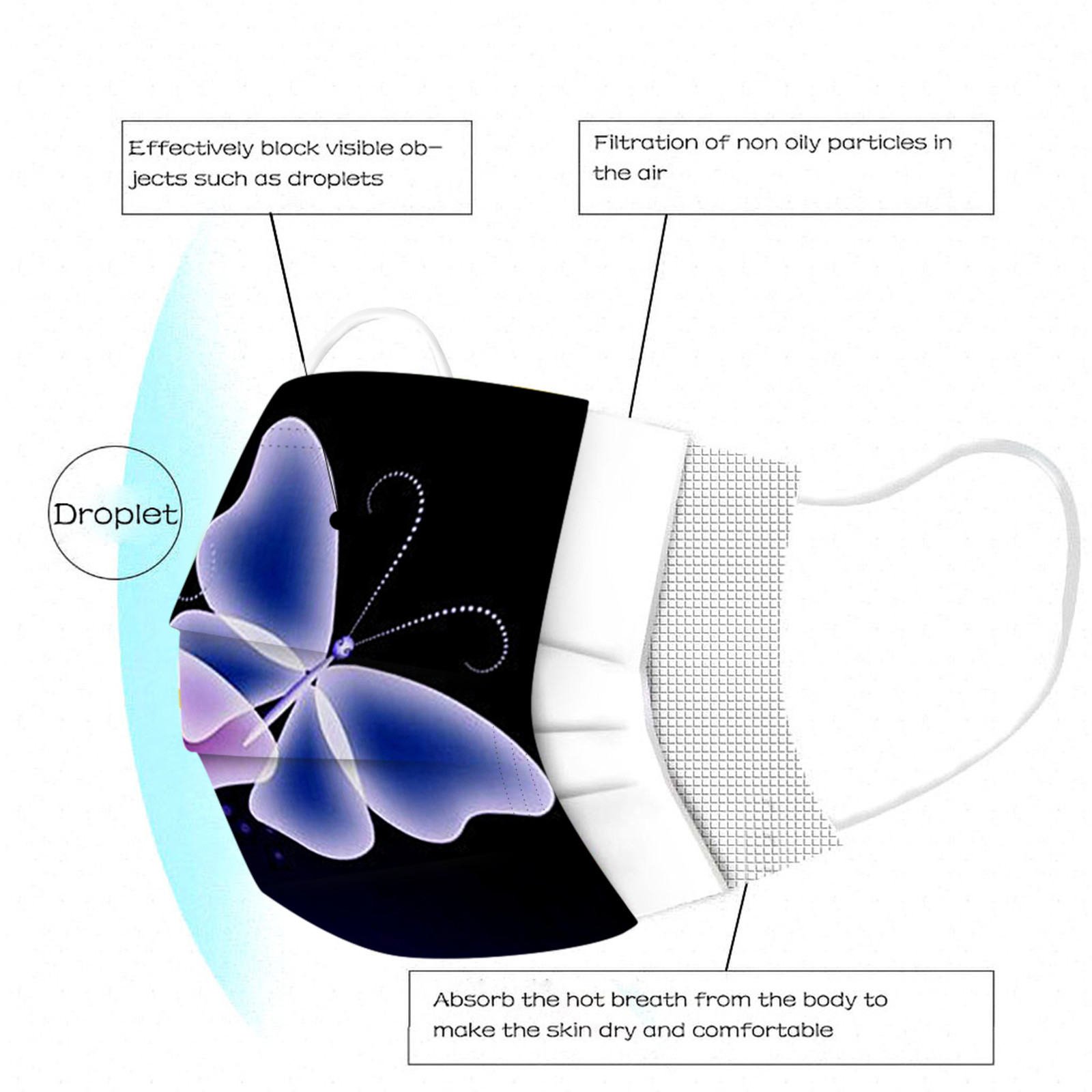 В 3 слоя Нетканая одноразовая маска изготовлена из 3 слоев нетканого материала, Безопасен и безопасен для использования. Дышащий материал и милый Узоры, которые делают его полезным и модным. Специальный 3 слоя из нетканого материала Дизайн, обеспечивает некоторую защиту от пыли, автомобильных выхлопных газов, Пыльца и т. д. эластичная Ушная петля, легко носить и не давит на уши. Маникюрный салон или любые другие области, где может потребоваться защита