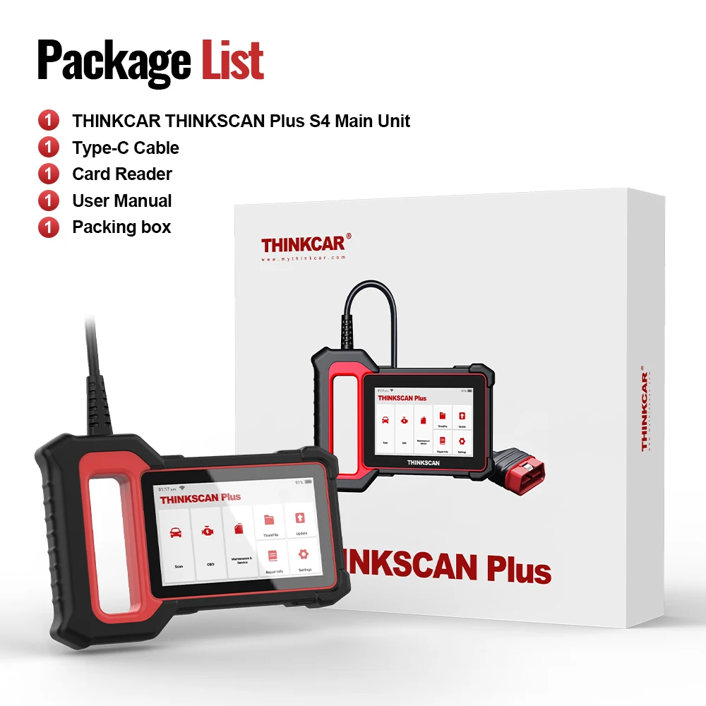 Продукты Thinkscan Plus S4-это новое поколение продуктов среднего и высокого класса DIY на базе системы Android, запущенной THINKCAR, которая может осуществить онлайн-обновление диагностического программного обеспечения. Его основные функции включают не только диагностику стандартного протокола OBD/EOBD, но и, что более важно, у него есть профессиональное диагностическое программное обеспечение для автомобиля и программное обеспечение для технического обслуживания, которое может выполнять комплексную диагностику всех транспортных электронных систем управления. Различные серии поддерживают различные системы и функции.