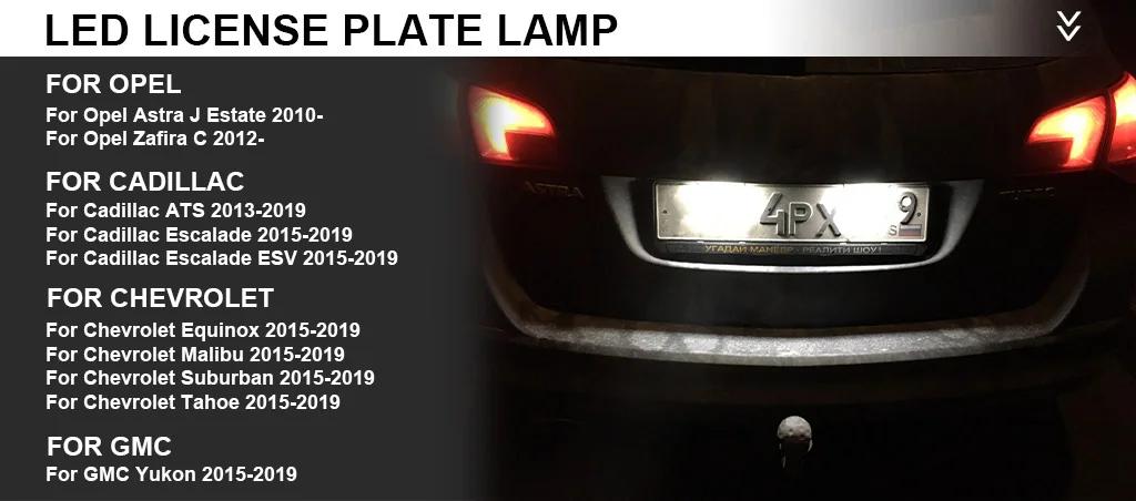 2 шт. светодиодный светильник номерного знака для Opel Astra J Zafira C Cadillac ATS Escalade ESV Chevy Equinox Malibu Suburban Tahoe
