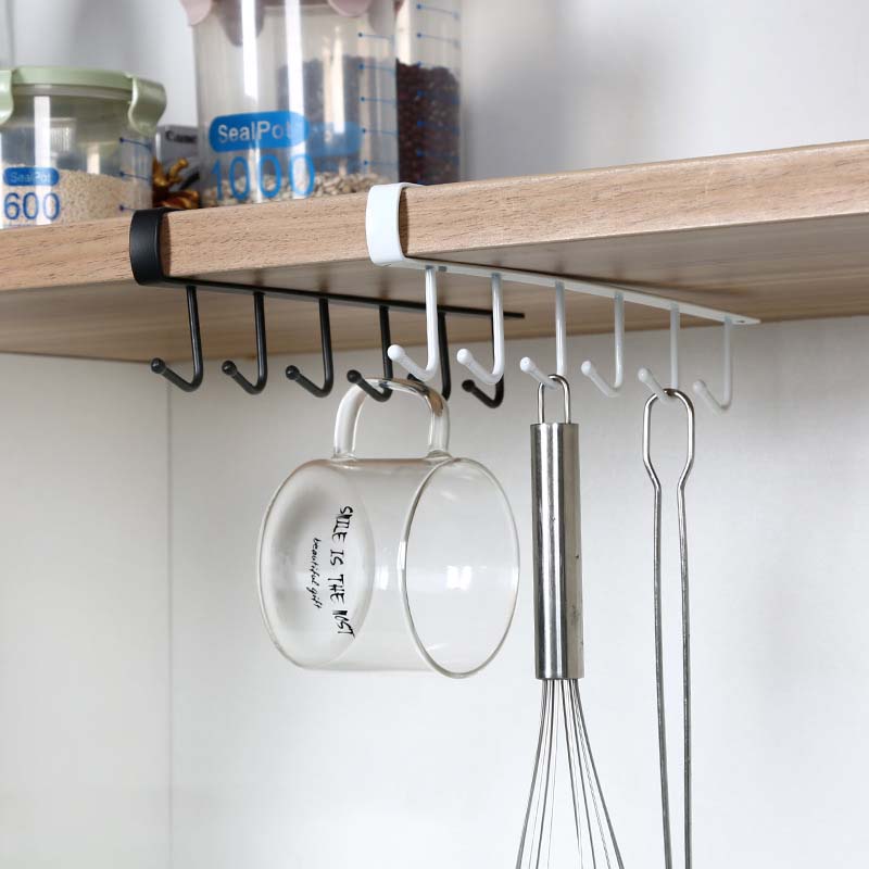1pc 6 Hooks Metal Under Shelf Mug Cup Cupboard Kitchen Storage Organizer