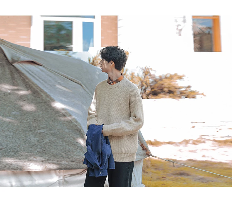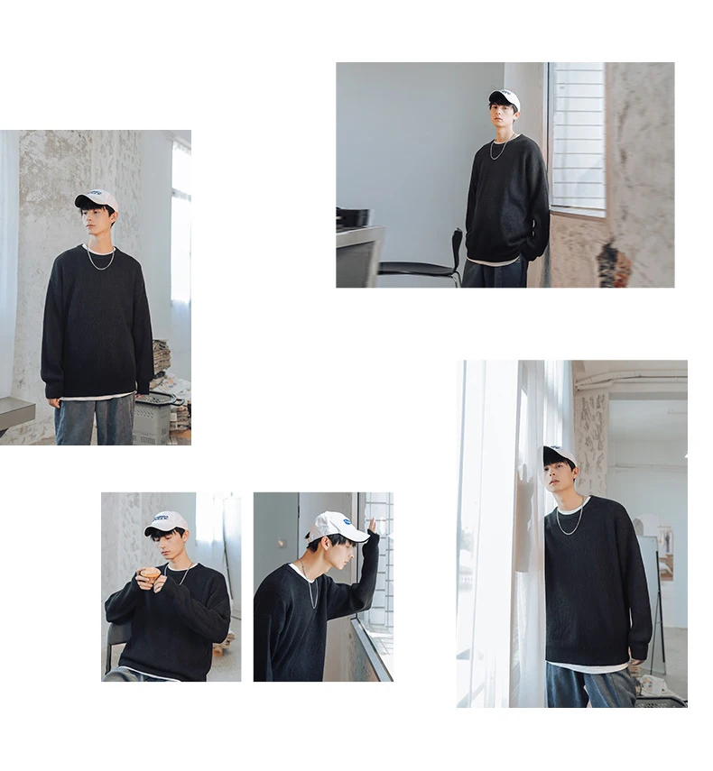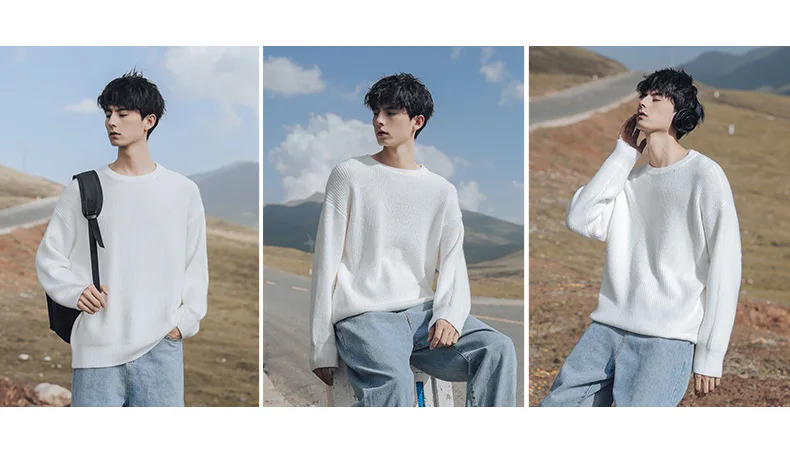 C645 осень зима новый мужской свитер свободный круглый вырез Повседневный Молодежный простой студенческий Молодежный кампус красивый популярный вязаный пуловер LFFMHMT