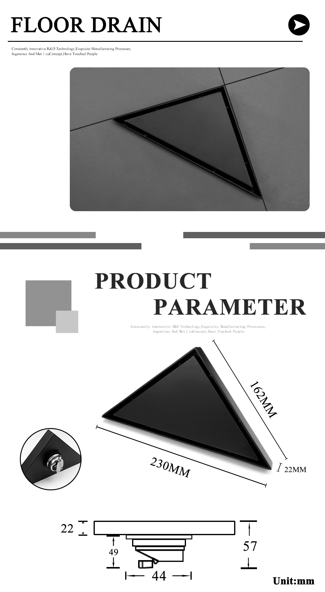 Скрытый Тип из нержавеющей стали треугольная Плитка вставка пол отходов решетки душ слив невидимые напольные сливы для ванной черный матовый золотой