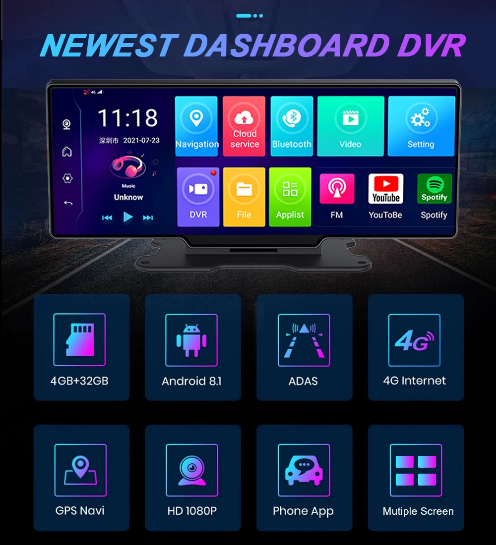 ** Основные Особенности: Android 8,1, g-сенсор, Сенсор с зеркалом заднего вида, циклическая Запись, обнаружение движения, светодиодный дисплей, 24 часа в сутки для парковочной системы, широкий динамический диапазон, отображение времени и данные Дисплей с зеркалом заднего вида, широкий динамический диапазон, GPS навигация, Bluetooth, WI-FI, H.264