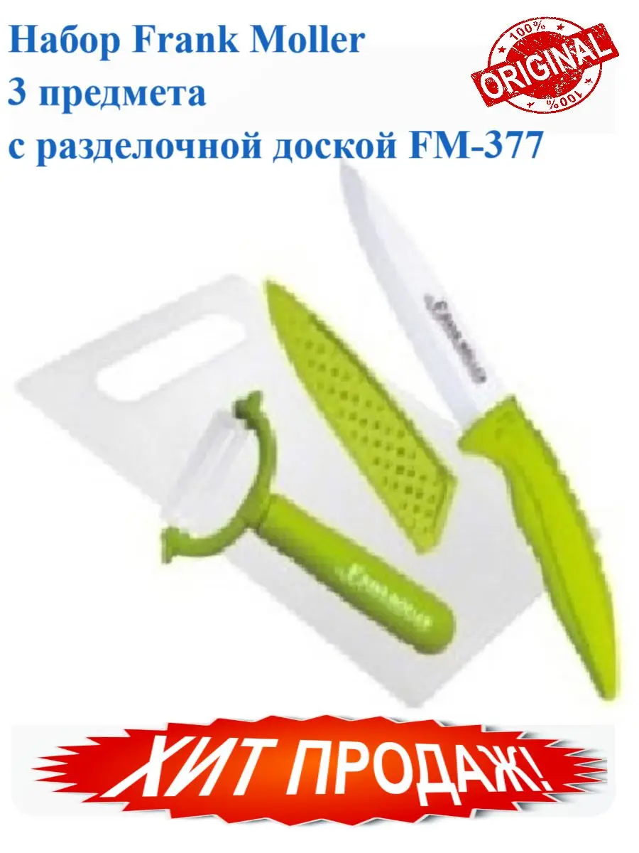 Набор керамических ножей Frank Moller с керамическими лезвиями подлинное украшение Вашей кухни и идеальный вариант для любой хозяйки. Современная немецкая высокотехнологичная керамика позволила создать легкие и удивительно острые керамические ножи из сверхтвердого диоксида циркония (лишь немного уступающей твердости алмаза), что очень долго сохраняют свою первоначальную остроту, и на них практически не остается царапин. Чтобы керамические ножи стали прочными, их обжигают в печи при температуре 1400 ° по Цельсию.