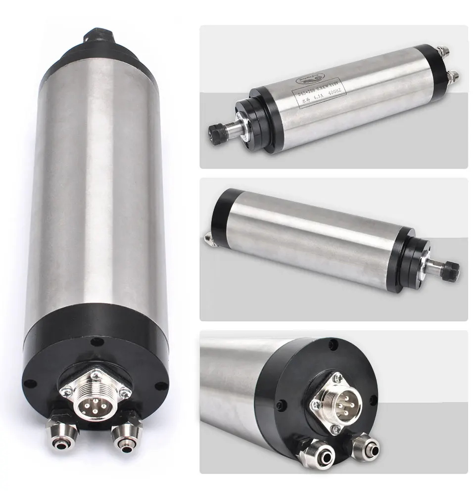 Двигатель шпинделя с водяным охлаждением использует циркуляцию воды для охлаждения тепла, генерируемого после вращения шпинделя на высокой скорости. Он охлаждается охладителем воды, и температура воды после циркуляции не будет превышать 40 градусов; Контроль температуры стабильный, охлаждающий эффект хороший, И шпиндель с водяным охлаждением в основном не шумит.