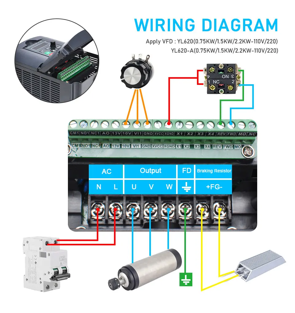 Применимый Шпиндель: 0.8 кВт/1,5 кВт мотор шпинделя