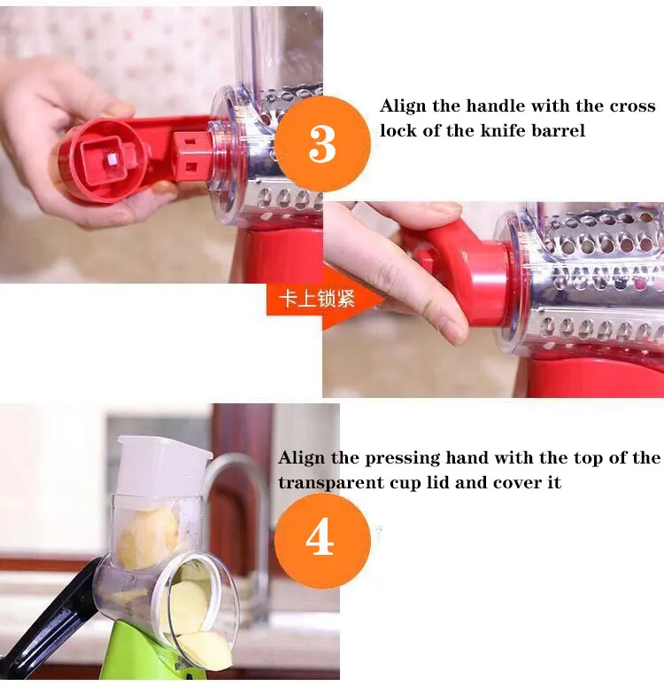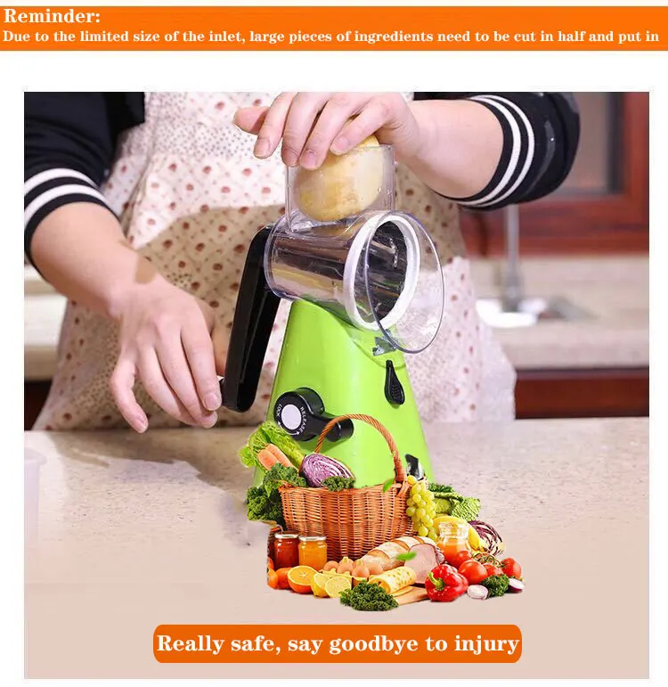 Разумная вращающаяся овощерезка барабанного типа имеет мощные всасывающие ножки для стабильности на вашем столе. Это делает его эффективным и простым в эксплуатации!