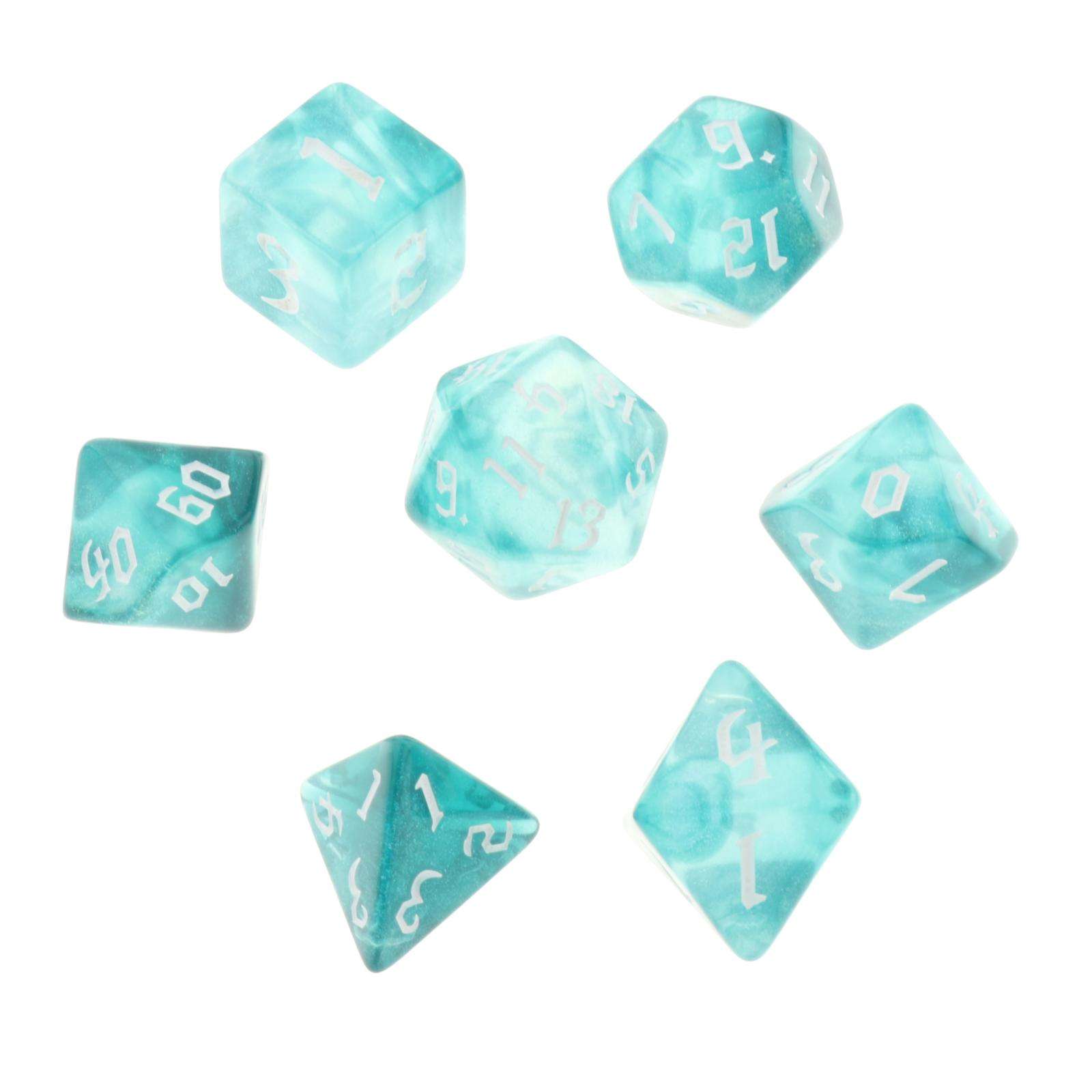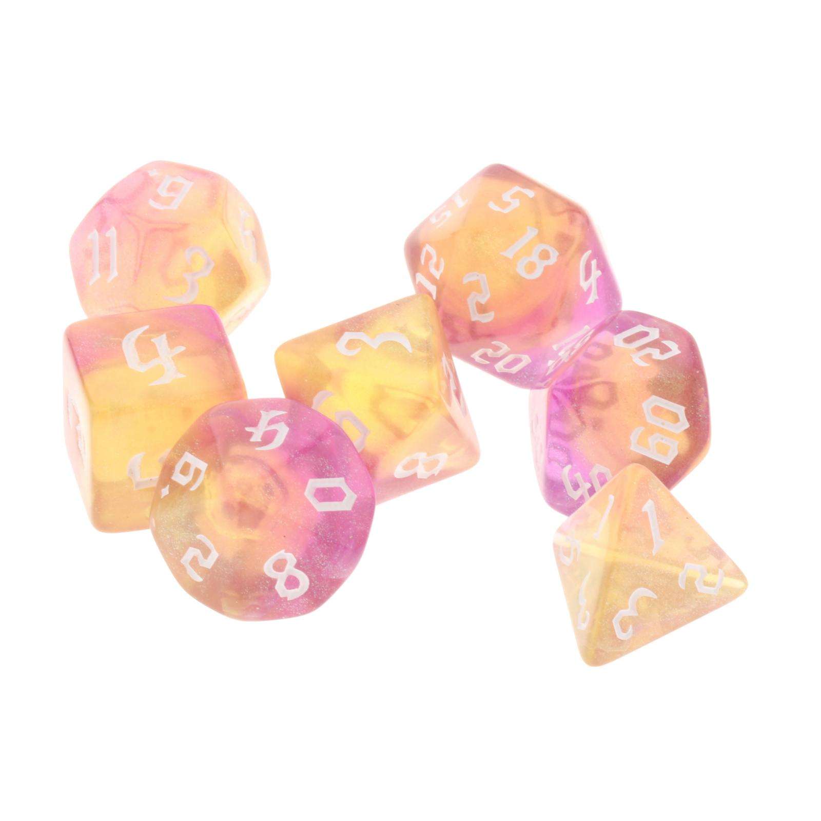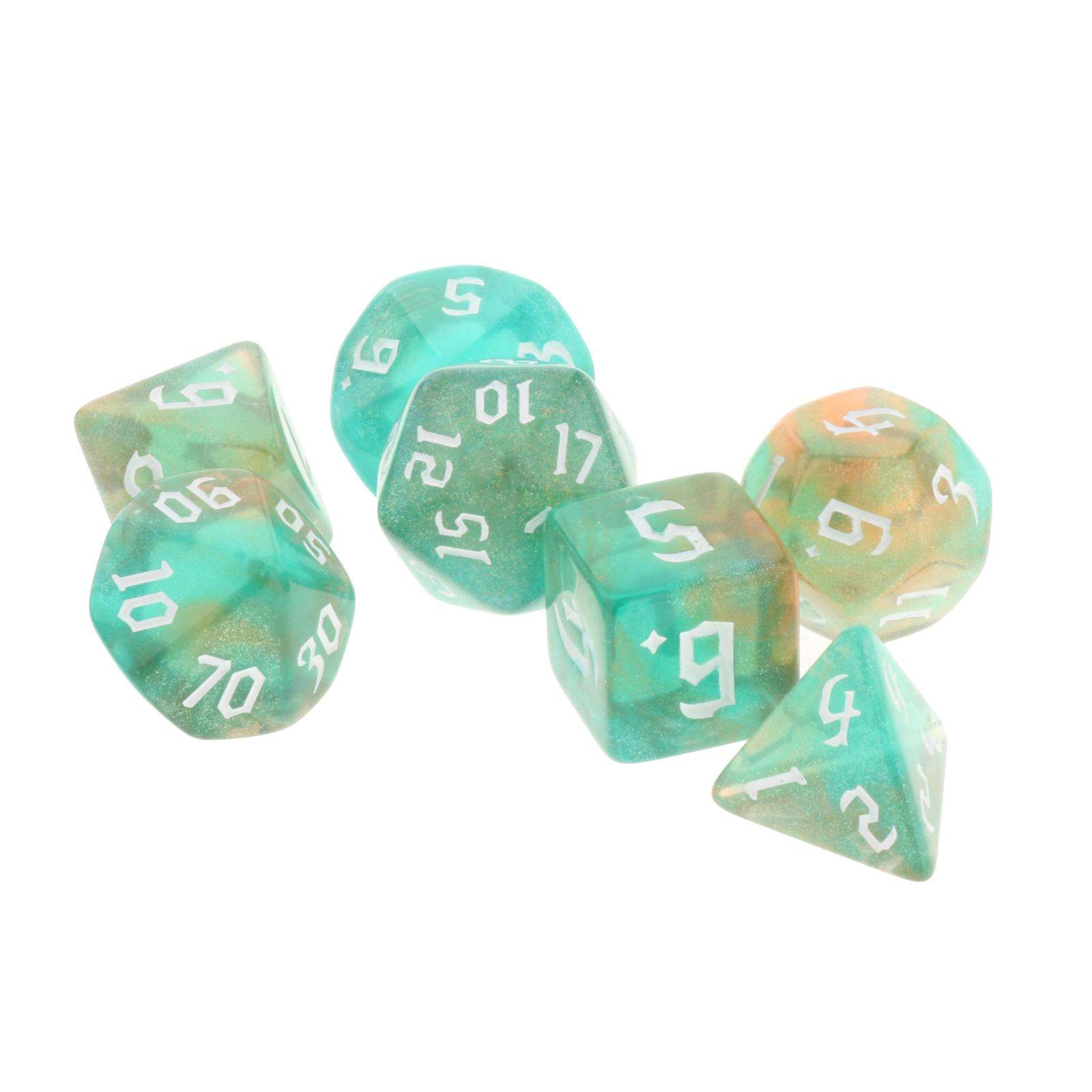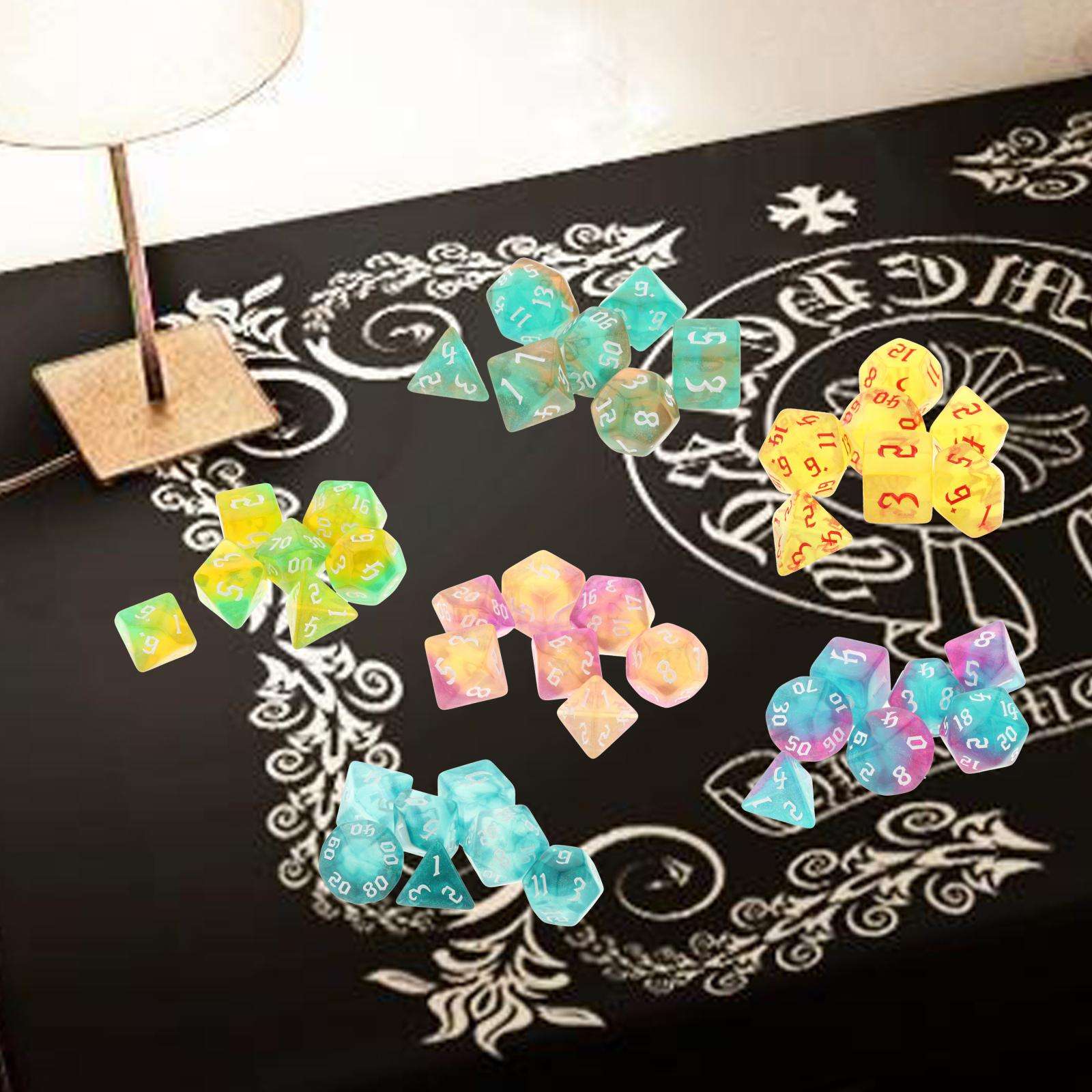 Набор Игральный костей: 7 шт. многогранные кубики включает в себя 4-кубика, 6-кубика, 8-кубика, 12-кубика, 20 Двусторонняя игральная кость и два 10 кубиков с разным номерам.