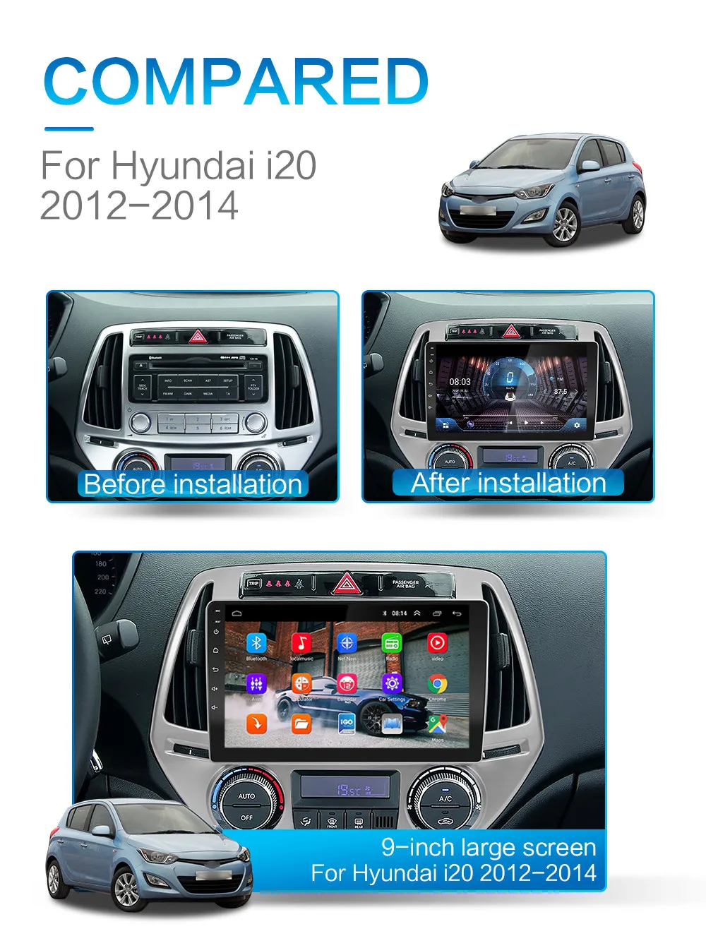 Android 10,0 автомобильное радио для Hyundai i20 2010 2011 2012 2013 2014 9 дюймов 1024*600 восемь ядер wifi Bluetooth Видео Аудио мультимедиа 2 din автомобильный dvd плеер