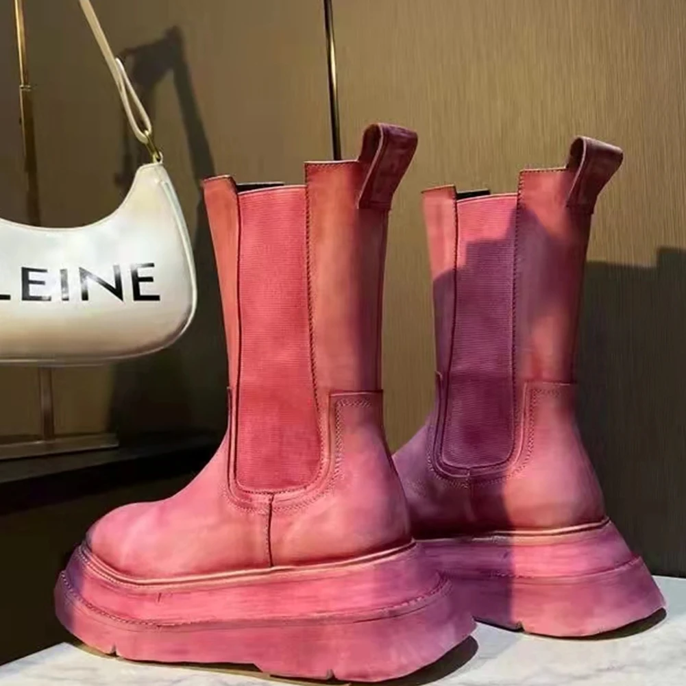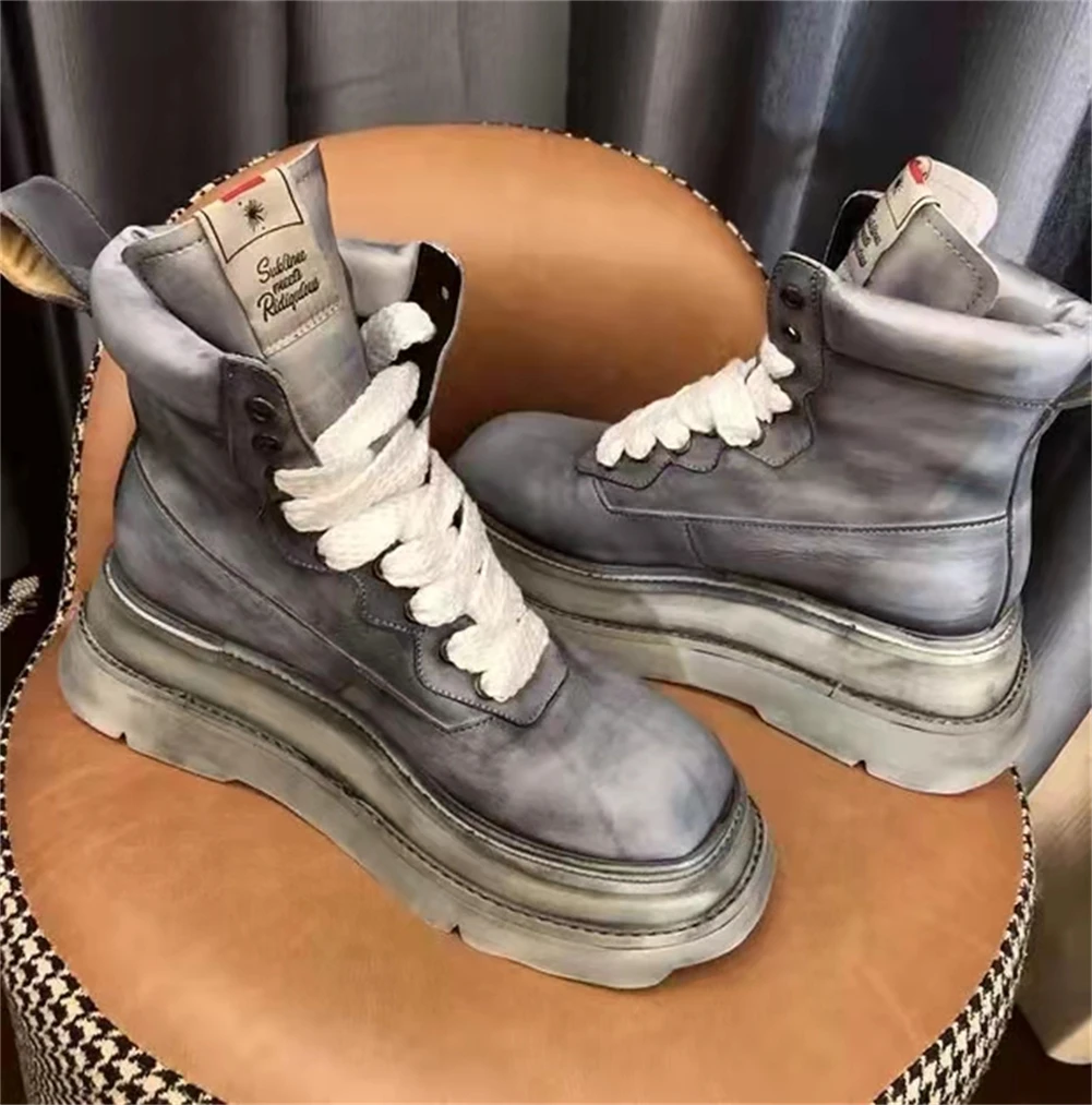 Женские ботинки; Ботильоны на танкетке со шнуровкой; Цветная модная женская обувь на не сужающемся книзу массивном каблуке для женщин; Сезон осень-зима; Новинка