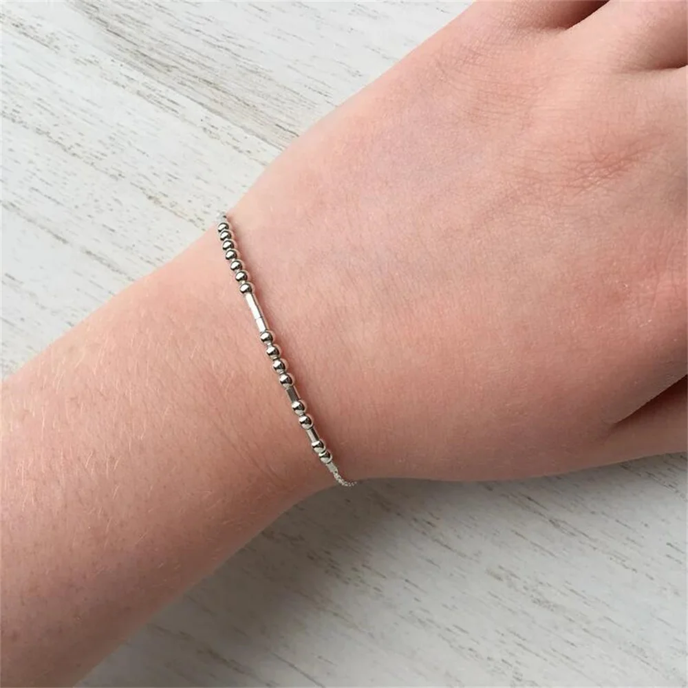 Ручной работы Морс код серебряные бусы, цепочка браслет