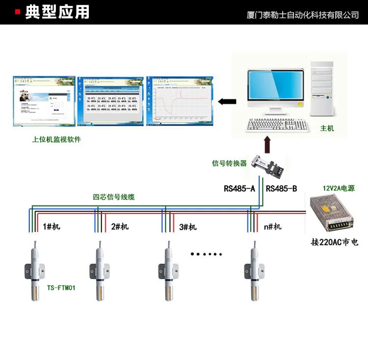TS-FTM01: Temperature and Humidity RS485 InterfaceTS-FTM02: Temperature and Humidity 0~5V OutputTS-FTM03: Temperature and Humidity 0~10V OutputTS-TM01: Single temperature RS485 interfaceTS-TM02: Single temperature 0~5V outputTS-TM03: Single temperature 0~10V output