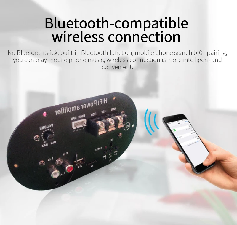 Он может быть подключен к внешнему твитеру, имеет функцию отключения памяти и автоматического воспроизведения, поддерживает прием инфракрасного пульта дистанционного управления, поддерживает удаленный выбор музыки с помощью карты и оснащен аудиокабелями. Источник звука можно вводить через компьютеры, планшеты, мобильные телефоны, телевизоры и т. Д.