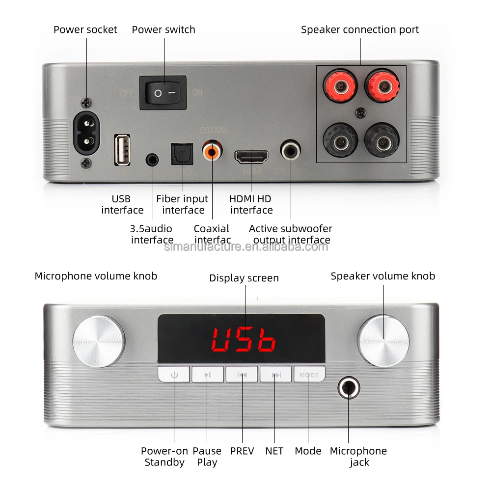 Введение: он оснащен четырьмя Высококачественные колонки, двумя сабвуферами, двумя полночастотными твитерами и несколькими интерфейсами ТВ-выхода. Он поддерживает функцию микрофона и может самостоятельно регулировать высокие и низкие басы. При просмотре фильмов, концертном вещании, спортивных соревнованиях и прослушивании музыки вы почувствуете всенаправленный стереозвук, сильный бас, округлый и реалистичный звуковой эффект, позвольте вам испытать настоящий домашний кинотеатр и атмосферу караоке.