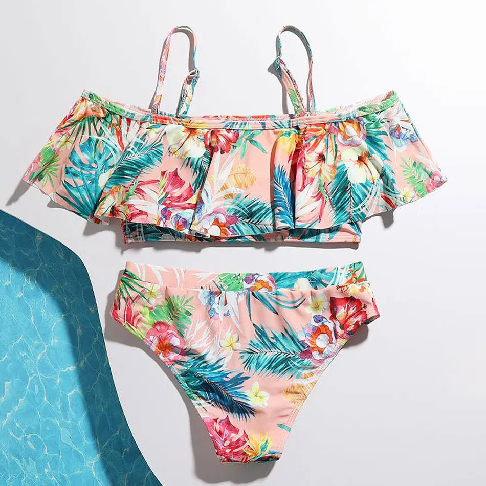 Купальник для девочек с лентой; Детский спортивный костюм из двух предметов; Детский купальник; От 7 до 14 лет подростковый Купальник; Комплект для девочек; Купальный костюм; Пляжная одежда; 2022
