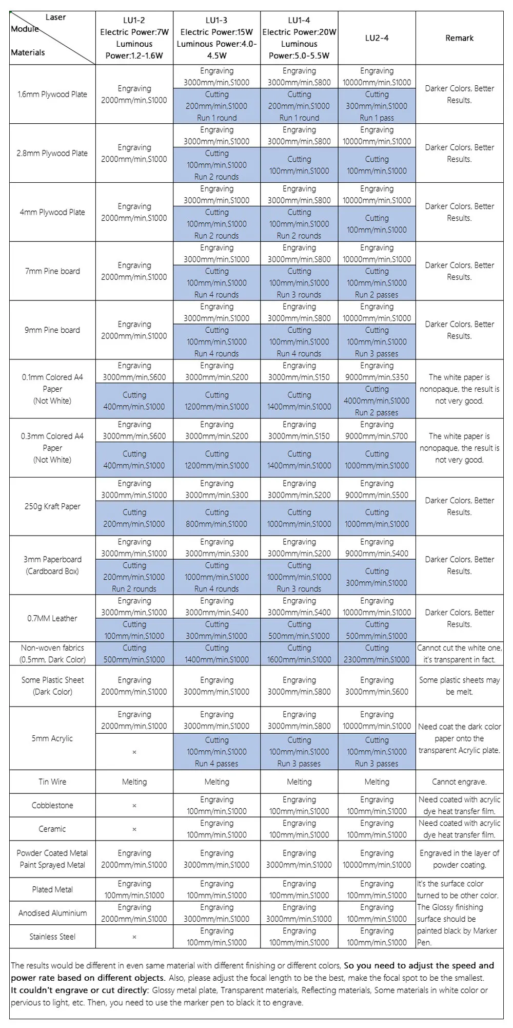 Laser power range could be S0 - S1000, compared to 8bits desktop laser engravers, which only has S0 - S255, Ortur Laser Master could control laser beam more accurately, could even use the high power laser unit to "draw" a picture on paper , that the 8bits high power laser engravers could not do.