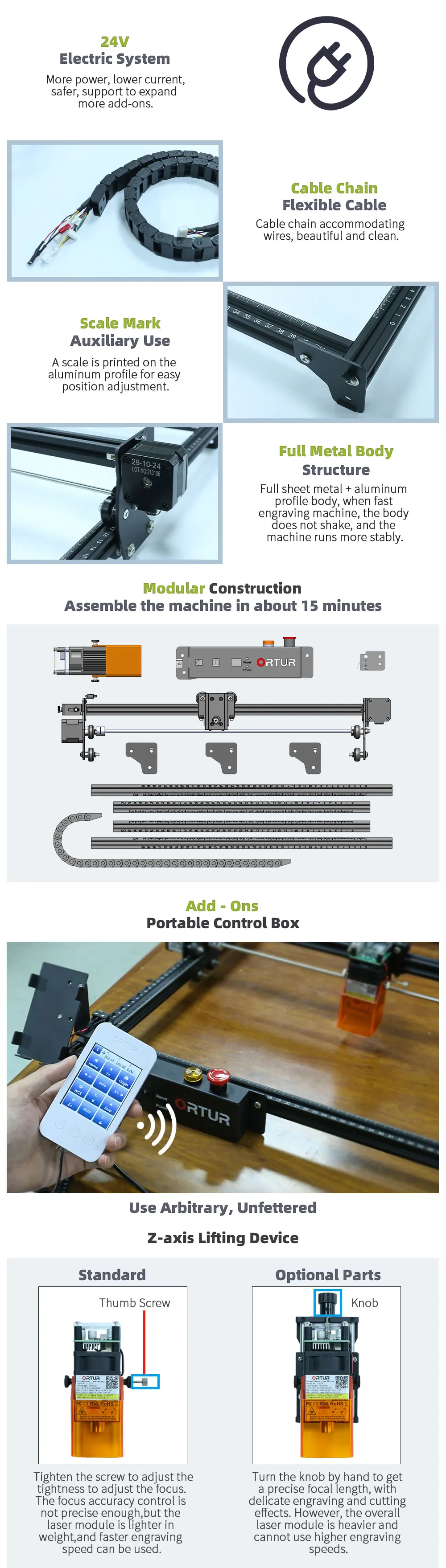● The First Laser Engraver Machine with 24 Voltage, with Lower Current and Safter System.