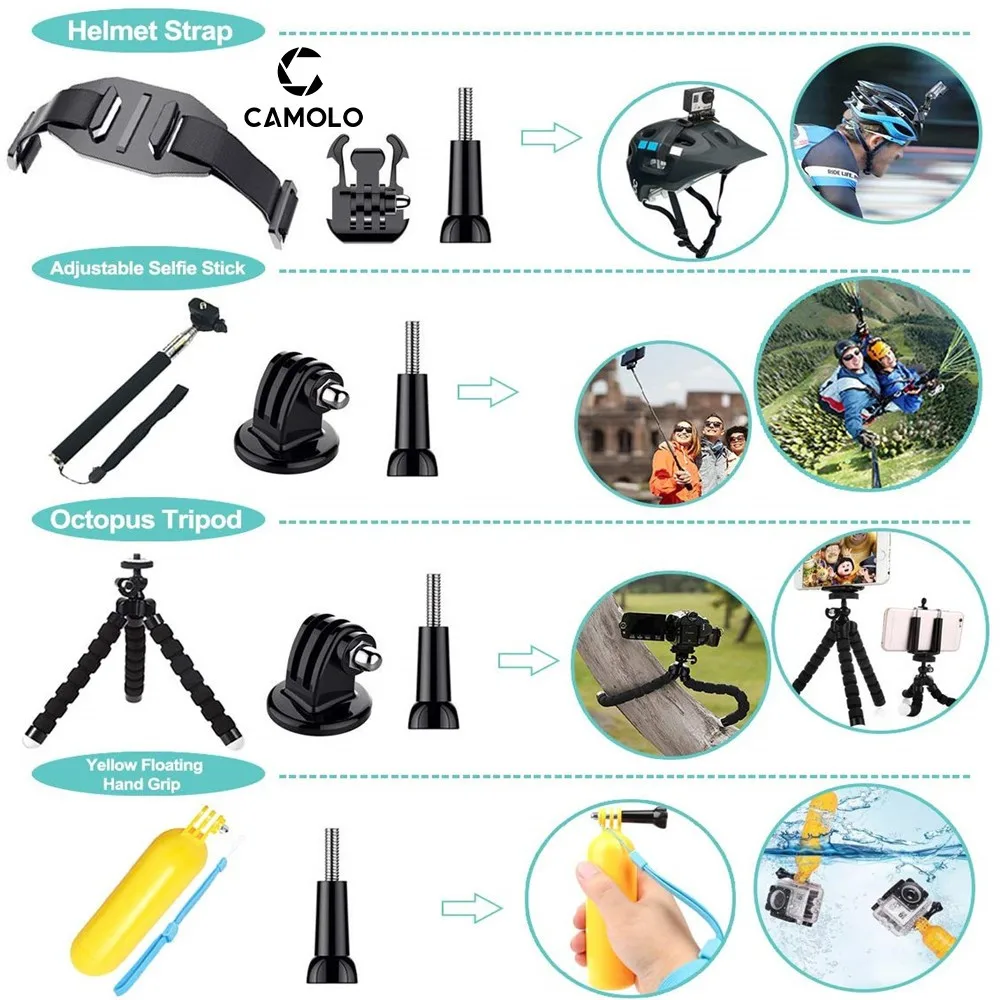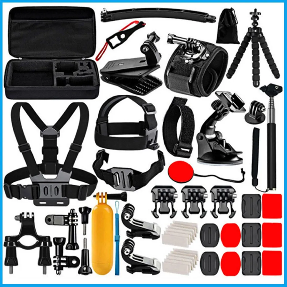 Комплект аксессуаров для спортивной экшн-камеры 52 в 1, совместимый с Campark ACT74 ACT76 / AKASO EK7000 / Crosstour / APEMAN A80 A70 / DBPOWER / FITFORT / ENEK / Acko / Dragon Touch / Lightdow / Yi / Yuntab/wewdigi/Amuoc / Wavetown / Lightdow / Victure / ODRVM /SJcam sj4000 sj5000 sj6000 sj7000 GoPro HERO 7 HERO (2018) / HERO6 Black / HERO5 Black / HERO5 Session / GoPro HERO4 Session / GoPro HERO Session / GoPro Hero + LCD / Gopro 4 3 + 3 2 1 / vemont / victsing / AEE / iTrunk / Sony спорт DV и многое другое.
