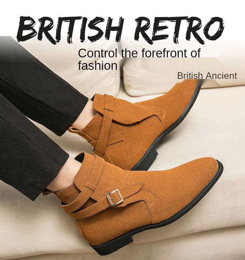 Брендовые коричневые замшевые ботинки в стиле ретро; Мужская повседневная обувь ручной работы; Кожаные модельные ботинки «Челси»; Мужские удобные ботильоны с острым носком